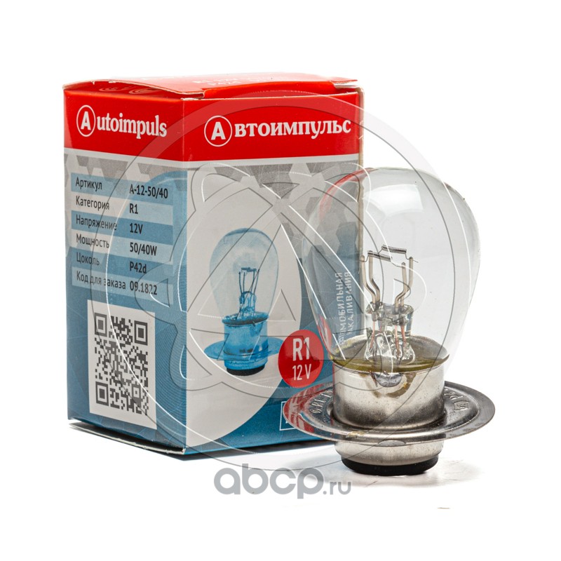 Автолампа накаливания R1, 12 В, 50/40 Вт, P42D (тракторная, двухконтактная)
