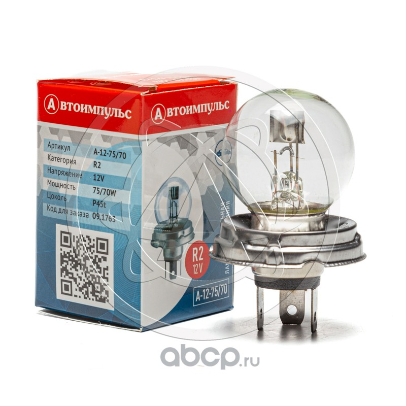 Автолампа накаливания R2, 12 В, 75/70 Вт, P45t (фарная)
