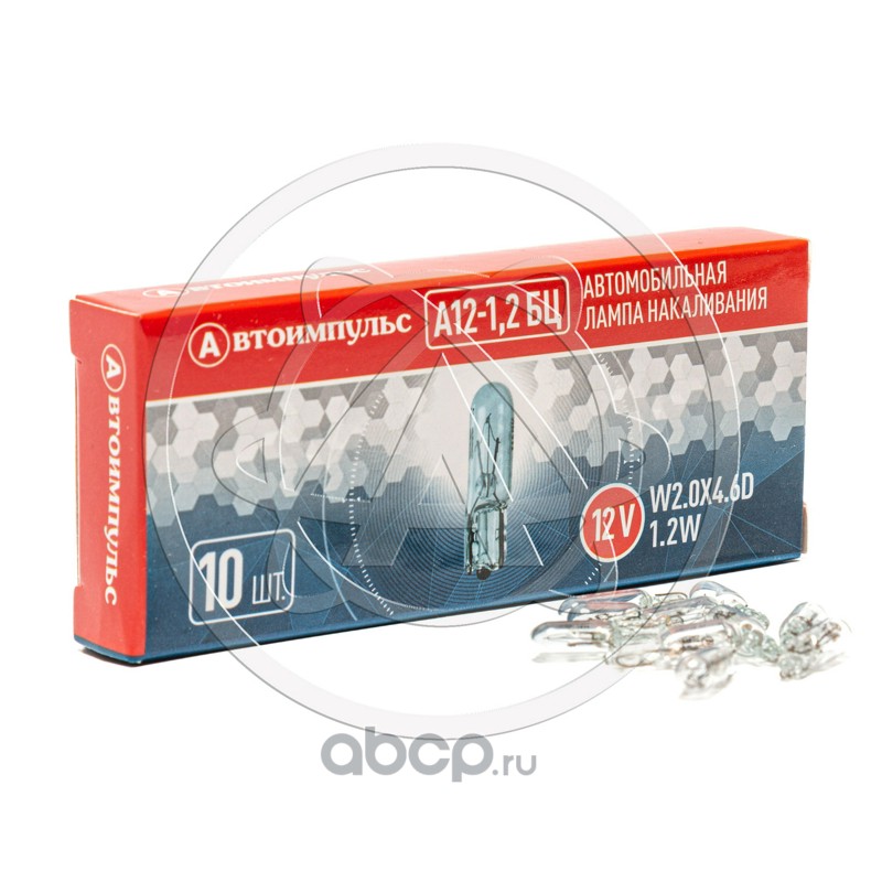 | АВТОИМПУЛЬС | А1212БЦIM | Автолампа накаливания W1.2W, 12 В, 1.2 Вт, W2.0X4.6D (бесцокольная) | ||