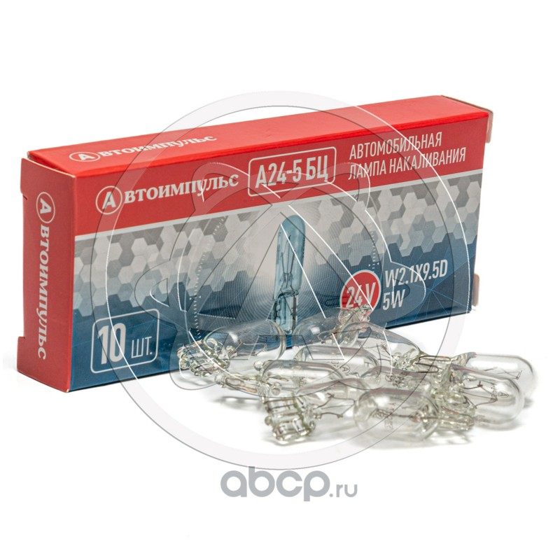 Автолампа накаливания W5W, 24 В, 5 Вт, W2.1X9.5D (бесцокольная)