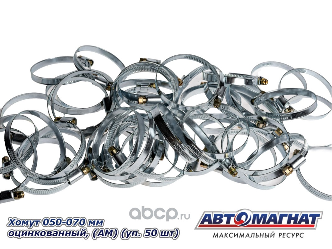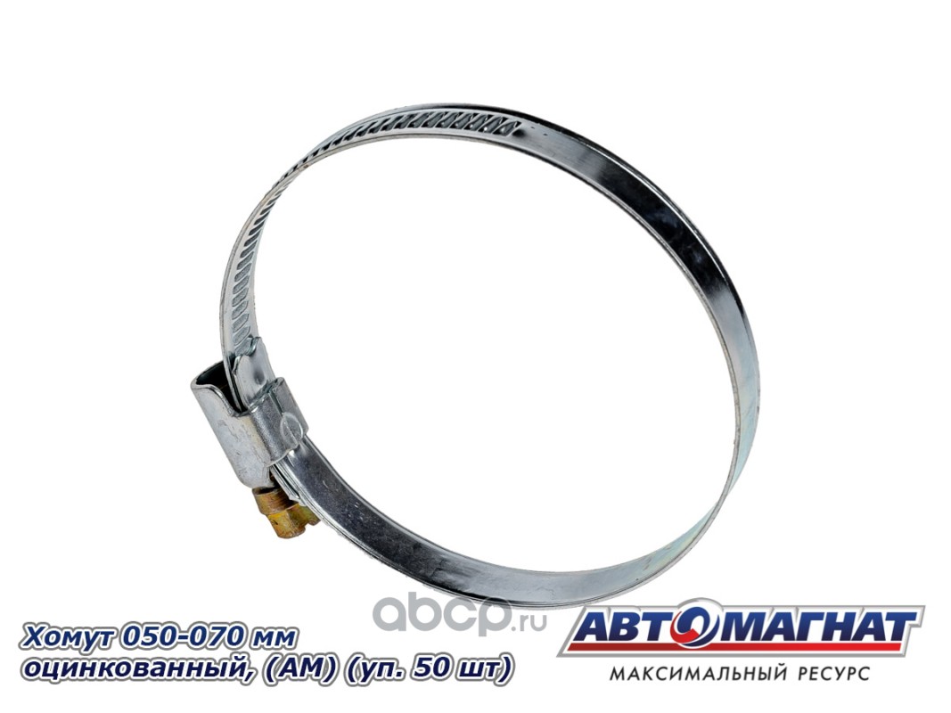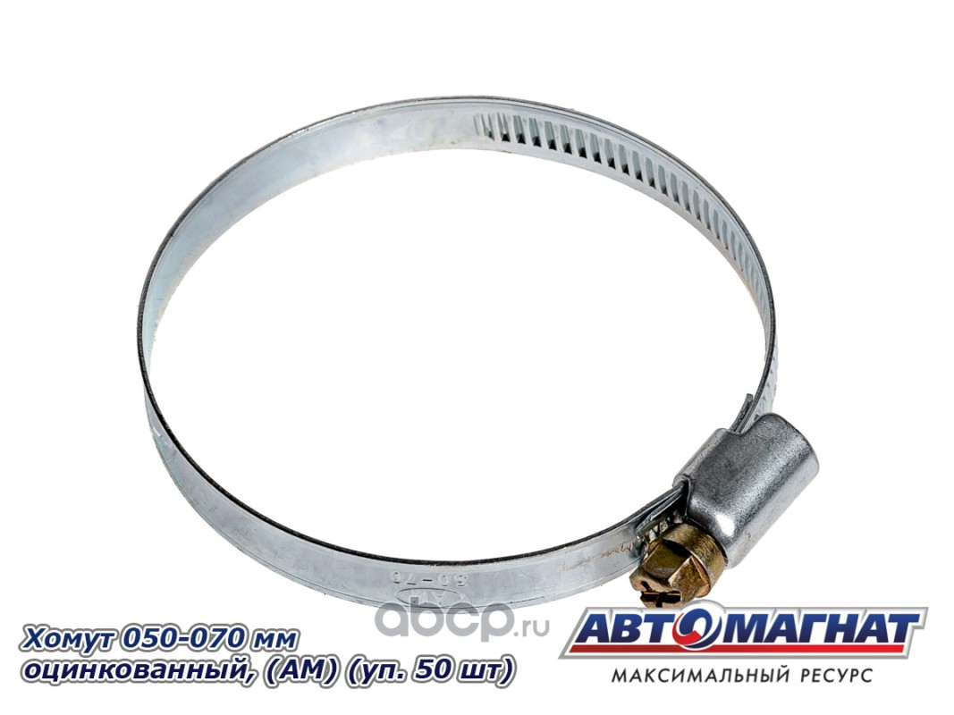 АВТОМАГНАТ AM35011 Хомут ленточный 050-070 мм, ширина 9 мм., W1 -Оцинкованный металл, болтовое крепление, "Автомагнат", (уп.50 шт)