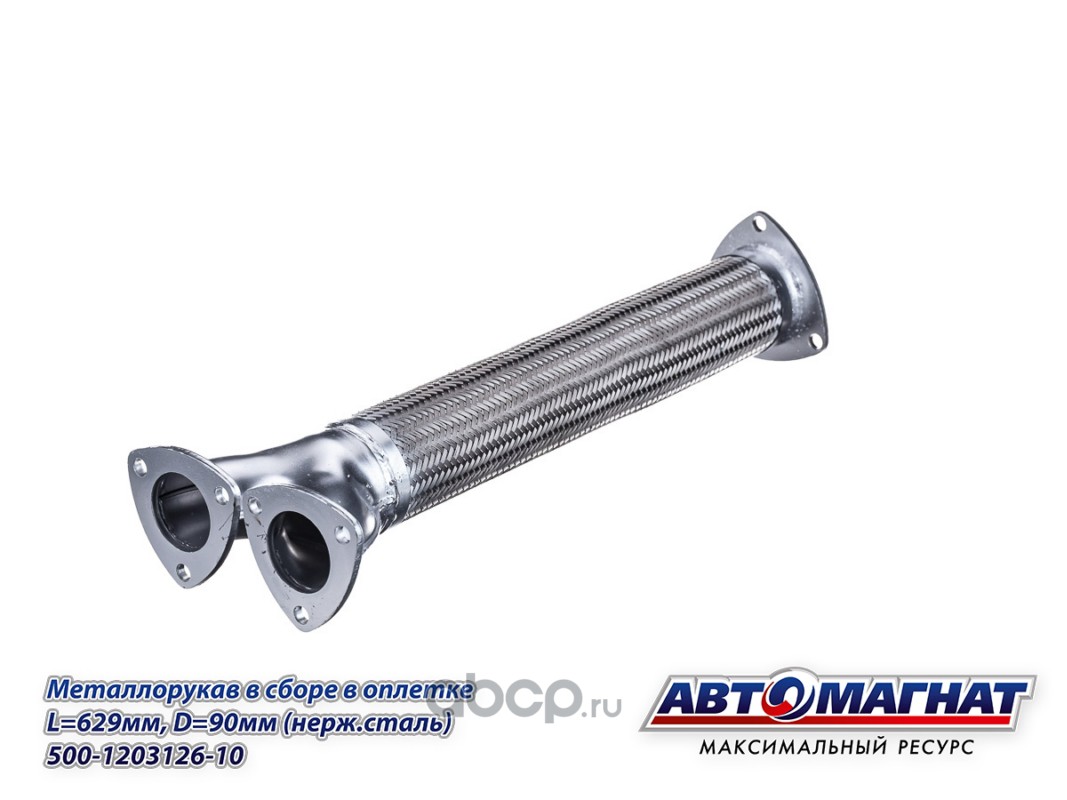 Металлорукав МАЗ-5335, 5549, 5429 в сборе (нержавеющая сталь) в оплетке L=629мм, D=90мм
