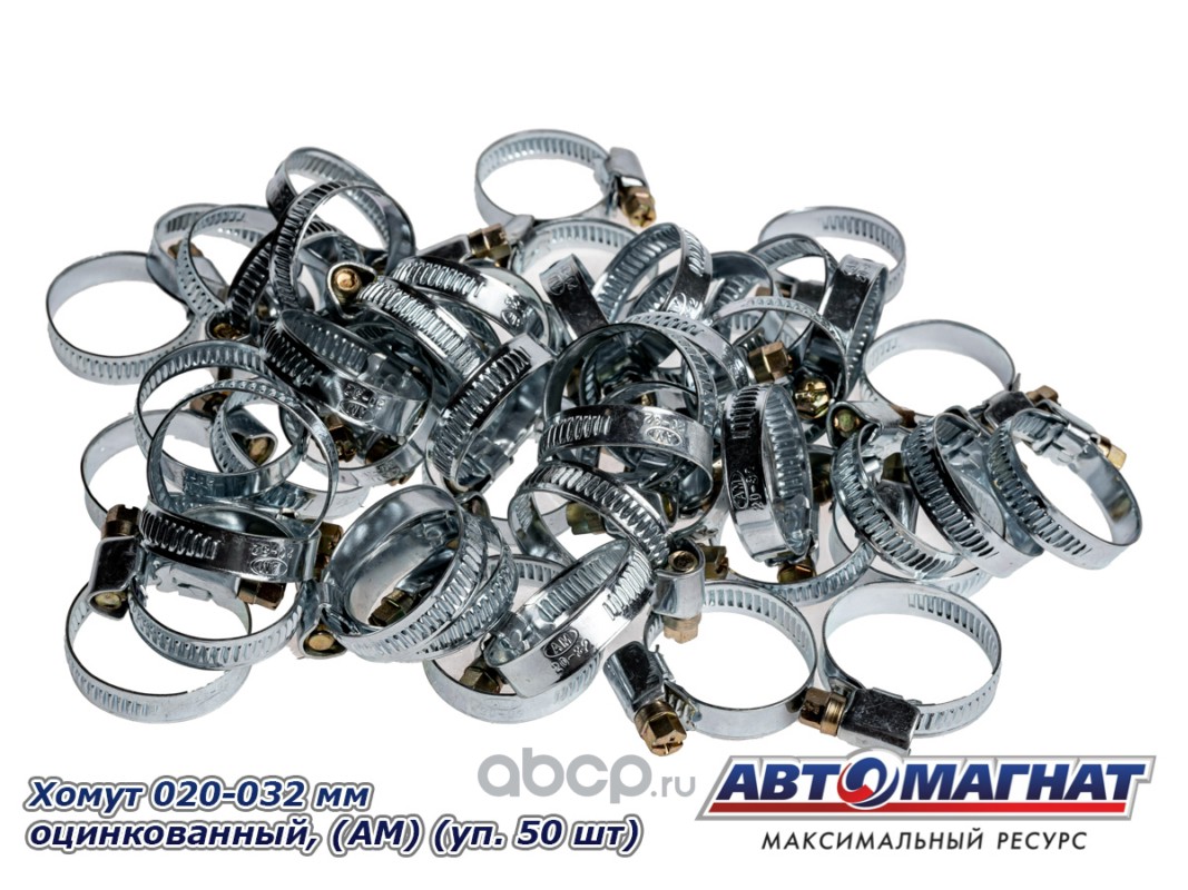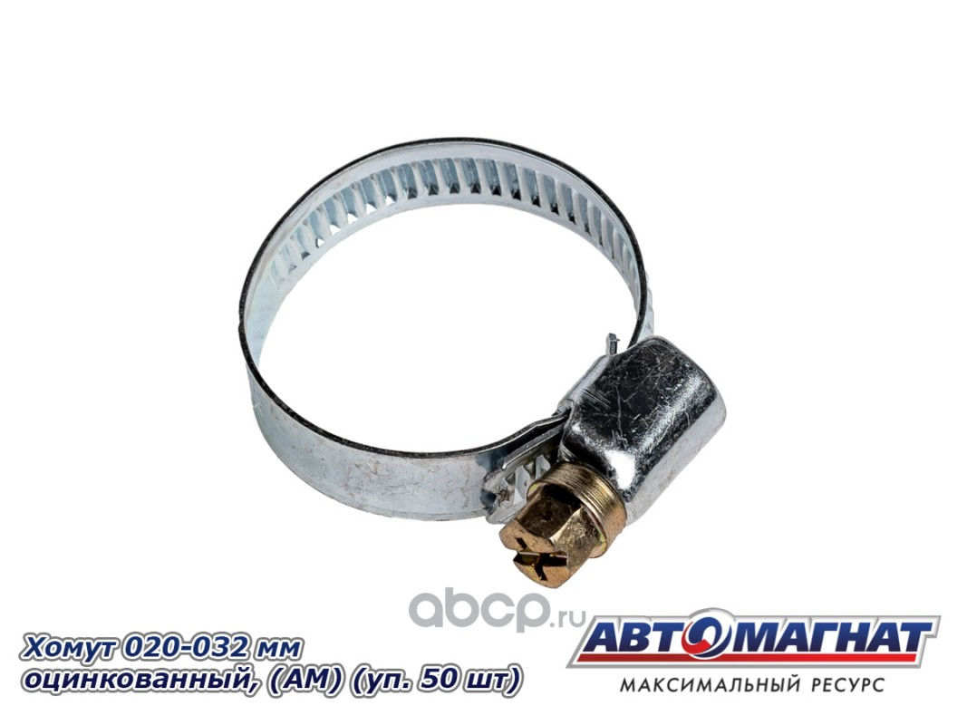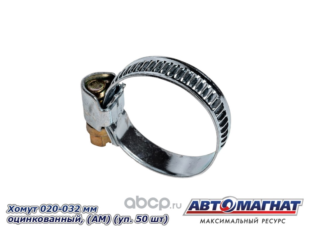 Хомут ленточный 020-032 мм, ширина 9 мм., W1 -Оцинкованный металл, болтовое крепление, "Автомагнат", (уп.50 шт)