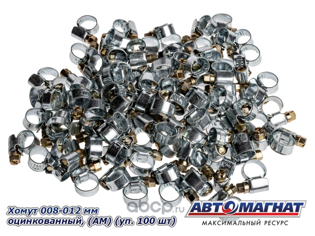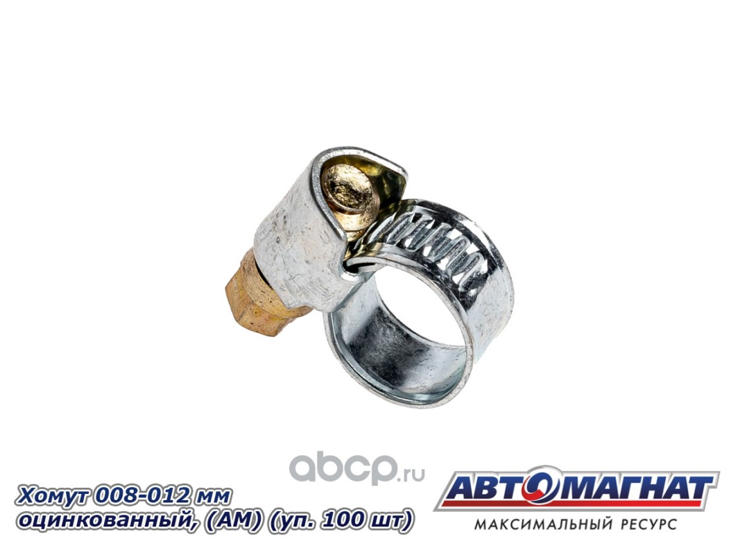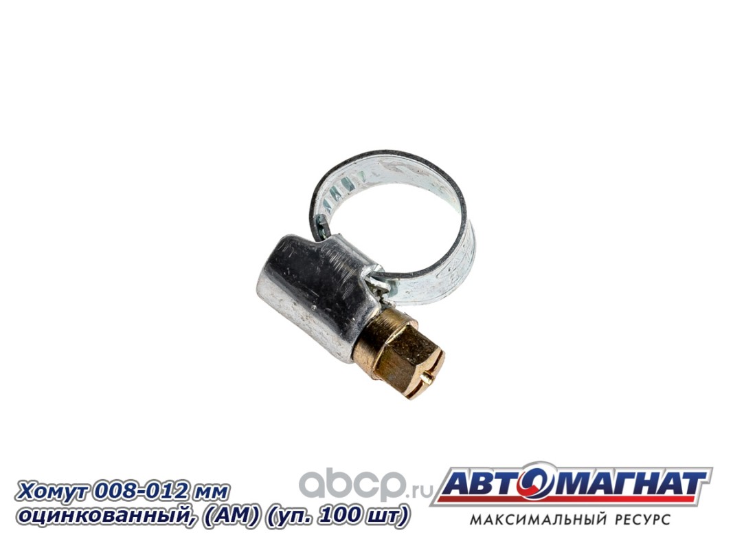 Хомут ленточный 008-012 мм, ширина 9 мм., W1 -Оцинкованный металл, болтовое крепление, "Автомагнат", (уп. 100)