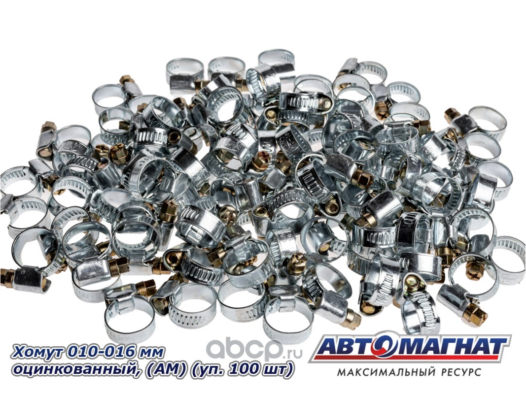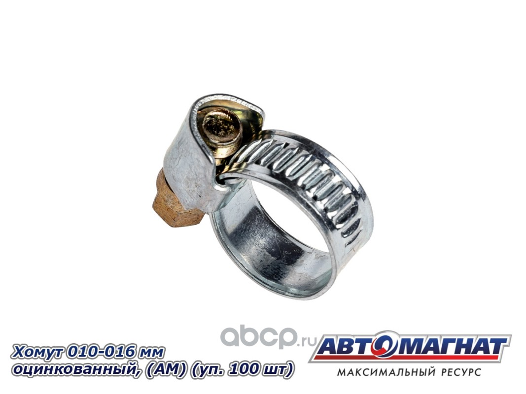 Хомут ленточный 010-016 мм, ширина 9 мм., W1 -Оцинкованный металл, болтовое крепление, "Автомагнат", (уп.100 шт)
