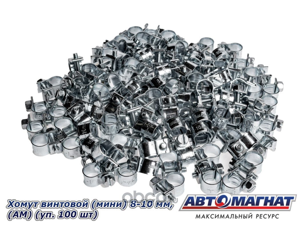 Хомут винтовой (мини) 8-10 ширина 9 мм. "Автомагнат" , (уп. 100 шт)
