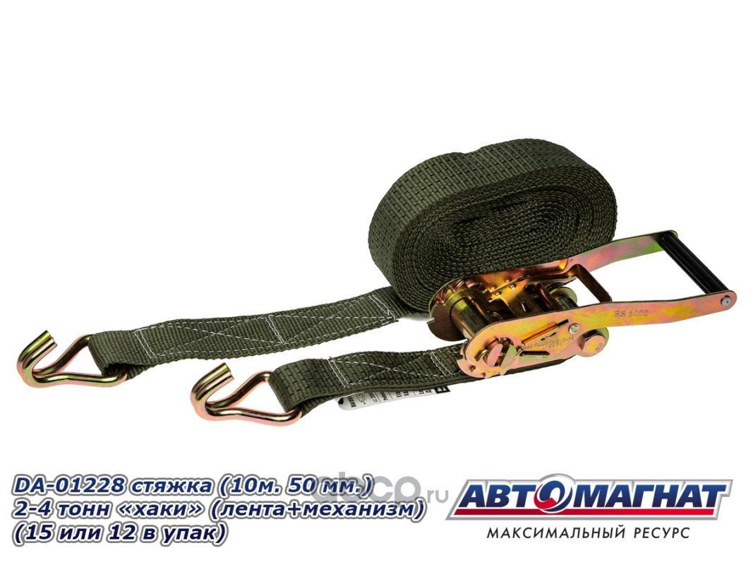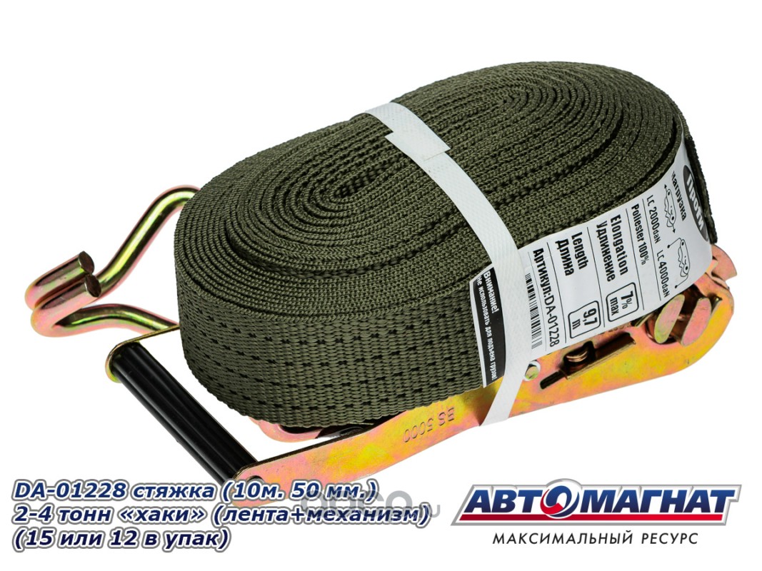 АВТОМАГНАТ AM58011 Стяжка (ремень) крепление груза (12м . 50 мм..) 2-4 тонн "хаки" (лента+механизм)