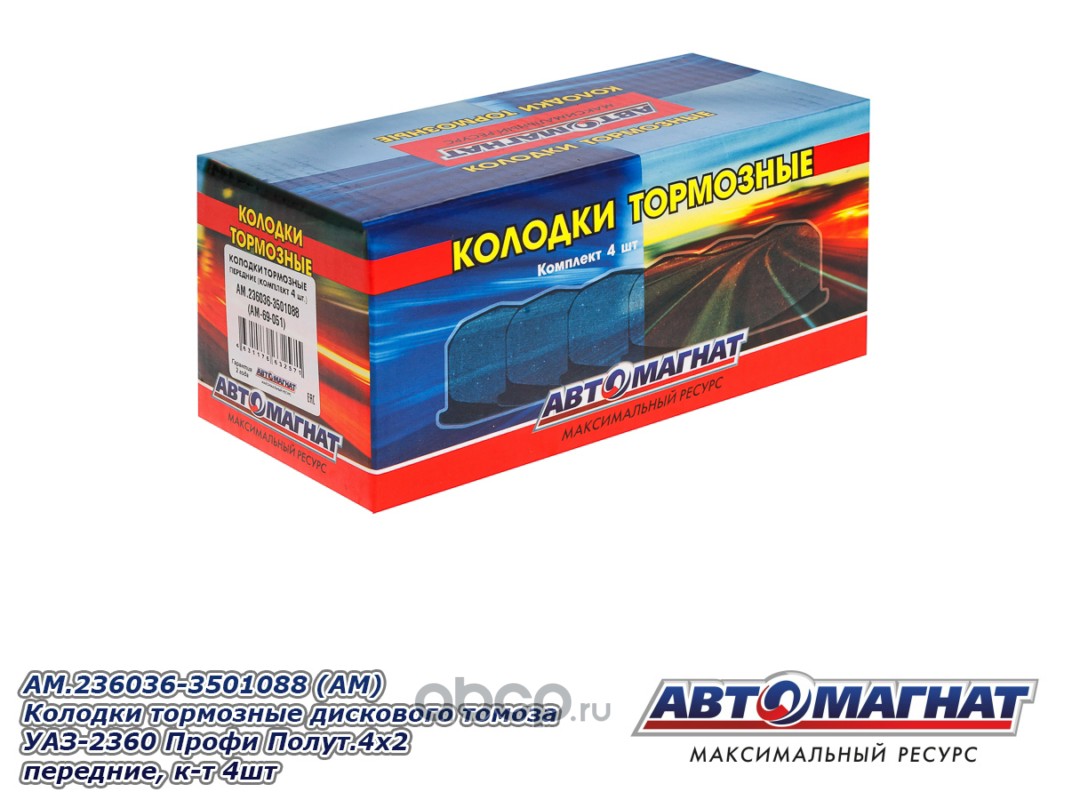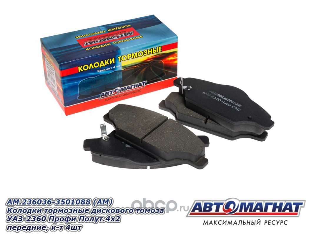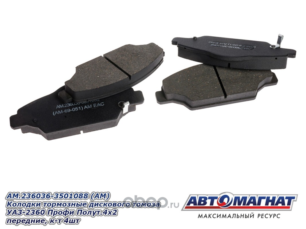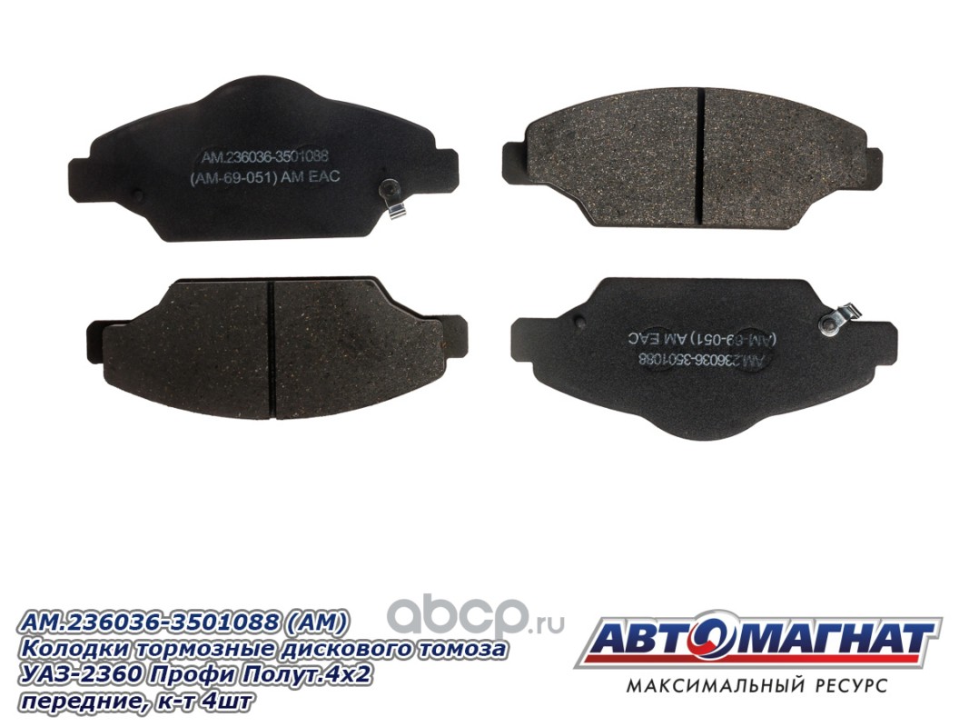 Колодки тормозные дискового томоза УАЗ-2360 Профи Полуторка 4х2 (21-) передние (комплект 4шт.)