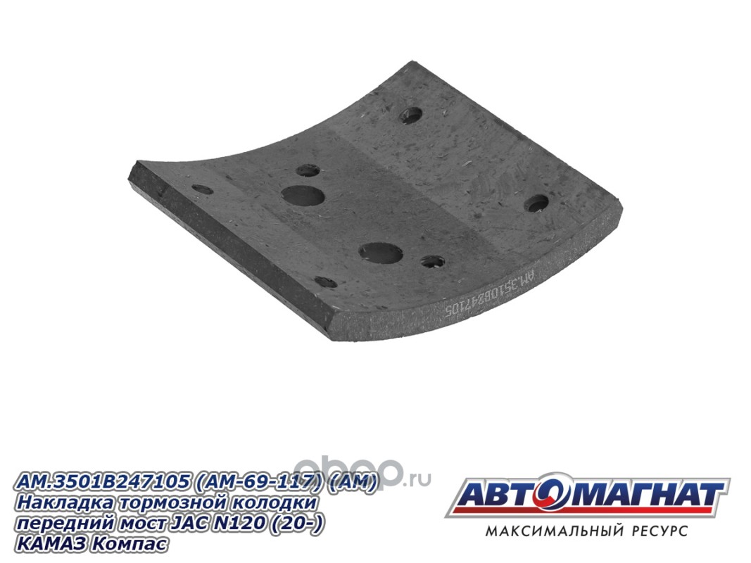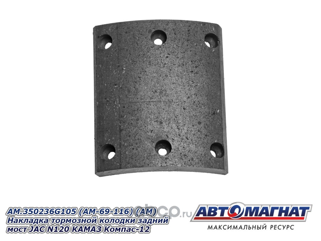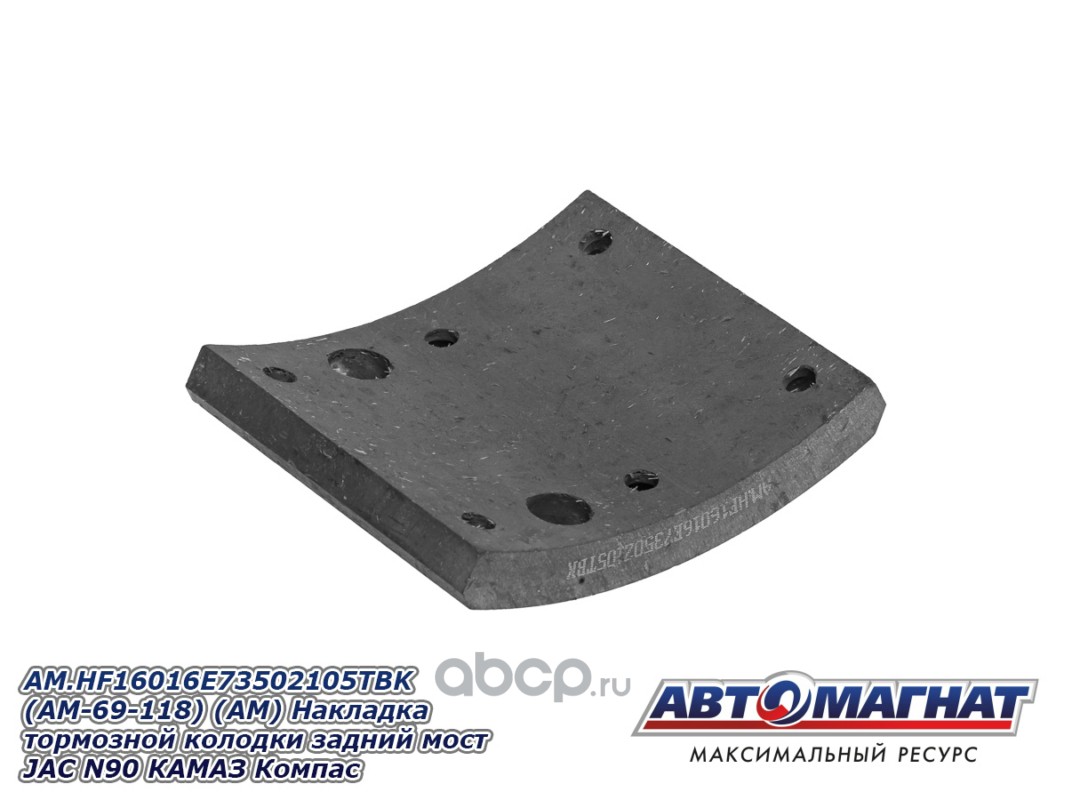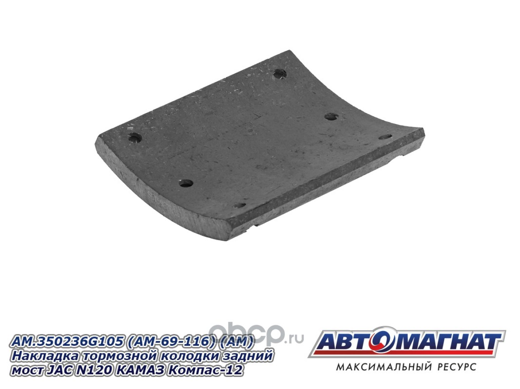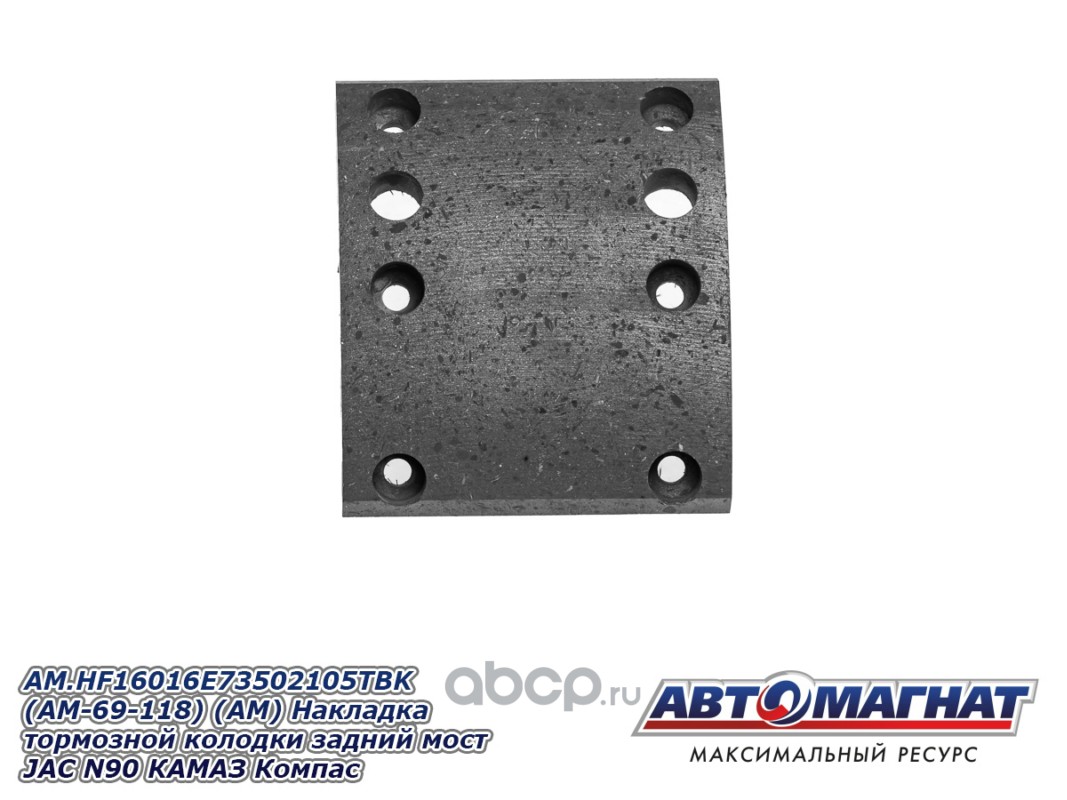 Накладка тормозной колодки задний мост JAC N120 (20-), КАМАЗ Компас-12, сверленые комплект 8шт. с заклепками