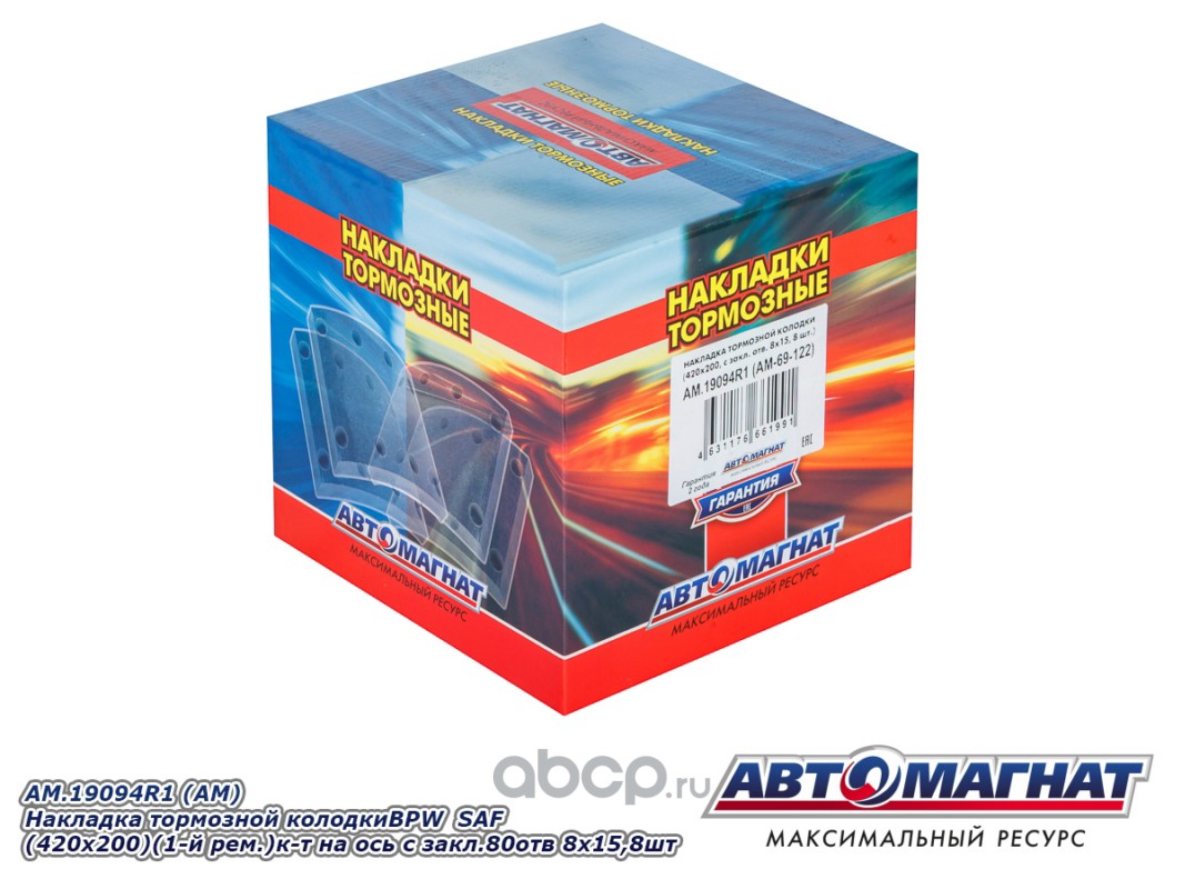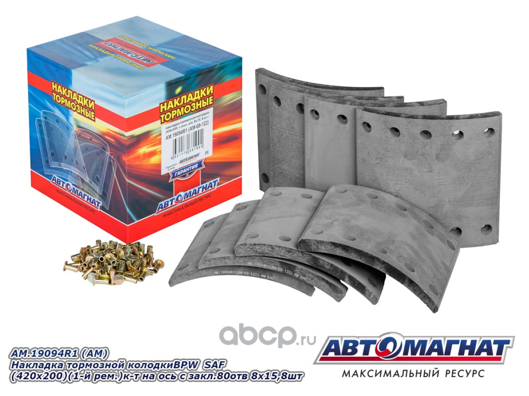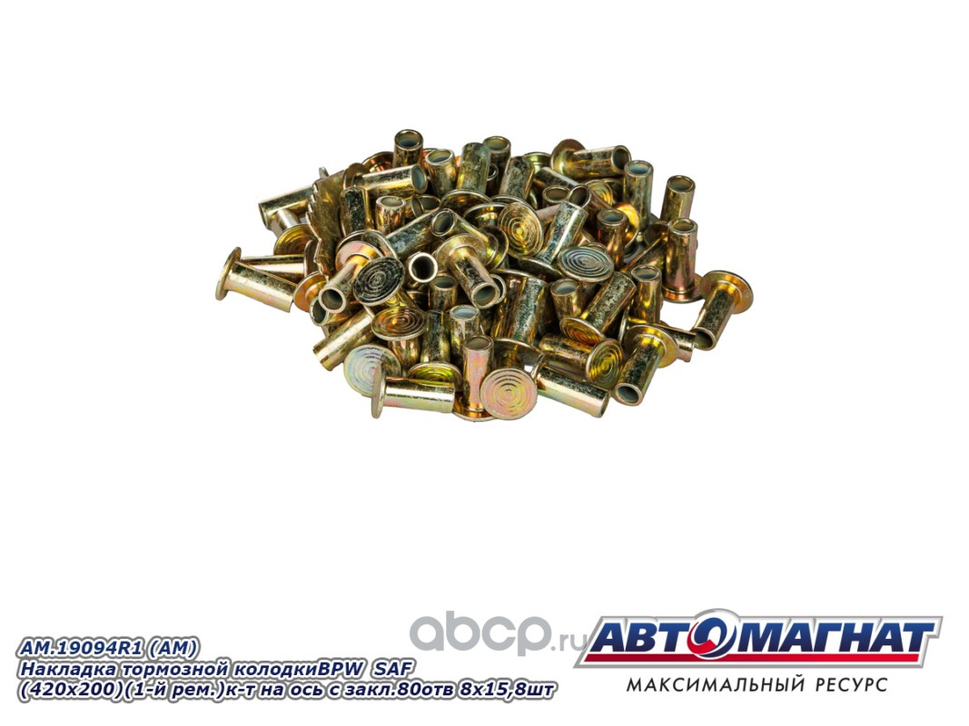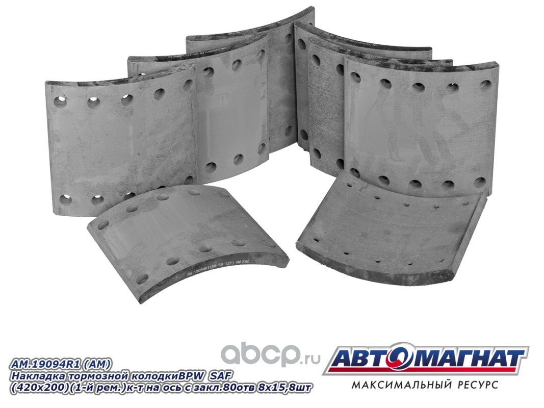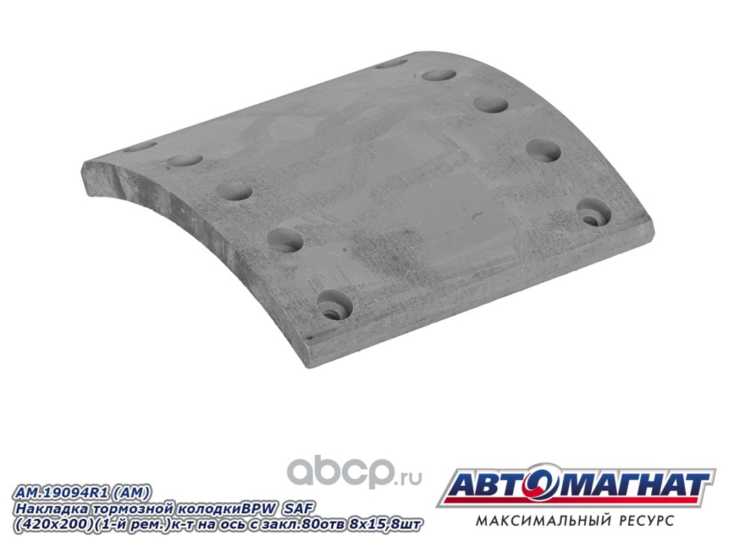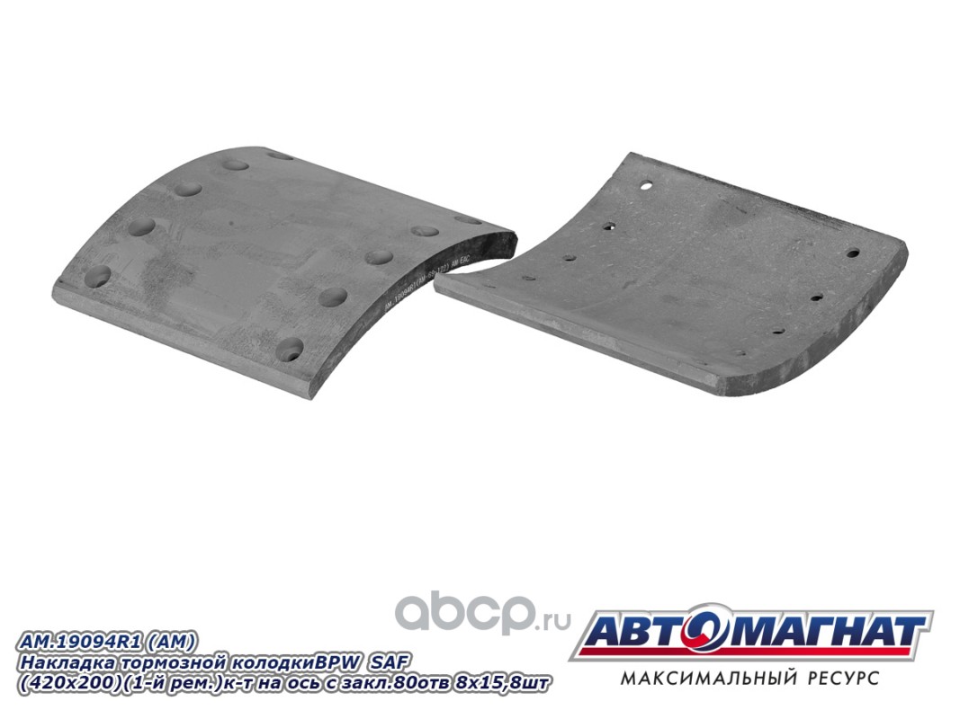 Накладка тормозной колодки BPW SAF (420x200) (1-й ремонт) комплект на ось с заклепками 80 отв. 8x15 / 93251 (8шт.)
