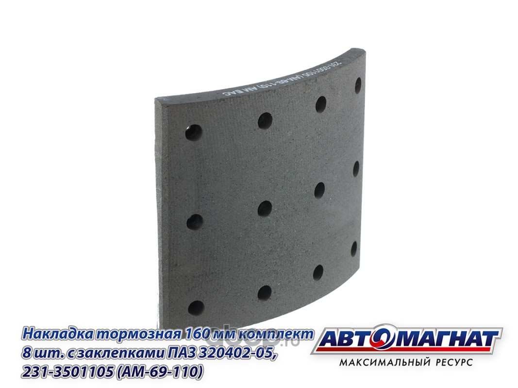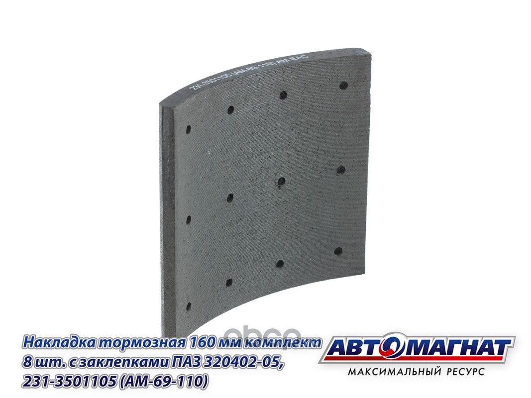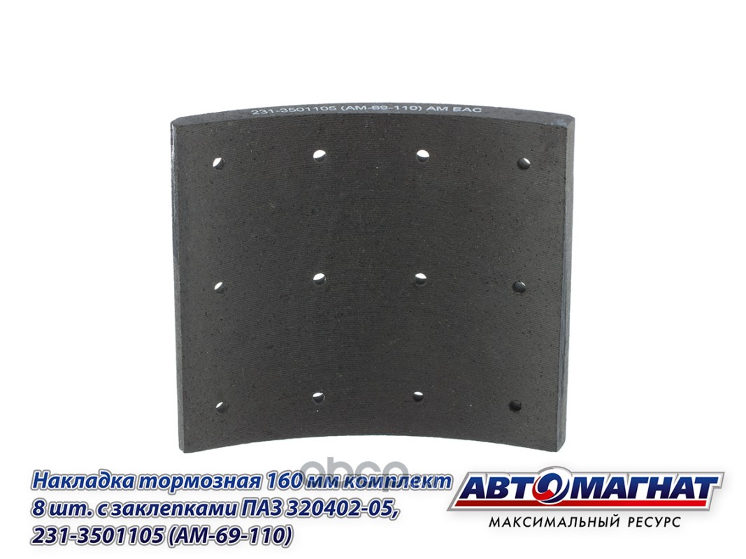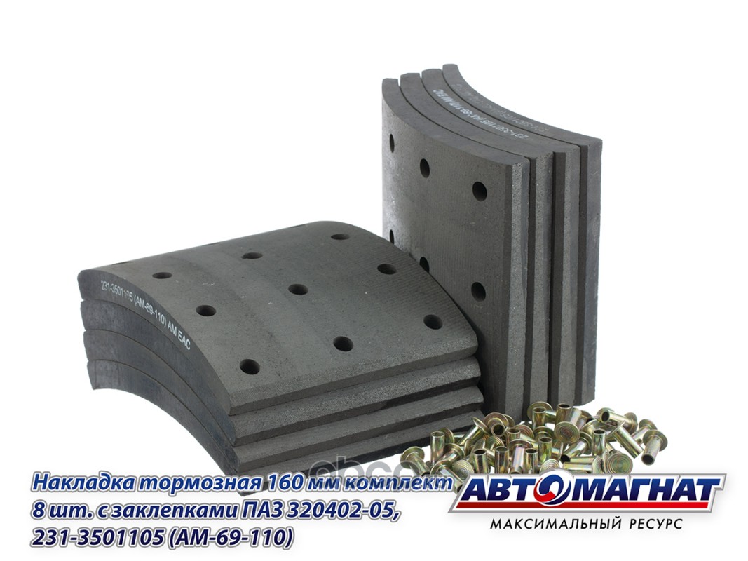 Накладка тормозная 160 мм комплект 8 шт. с заклепками ПАЗ 320402-05