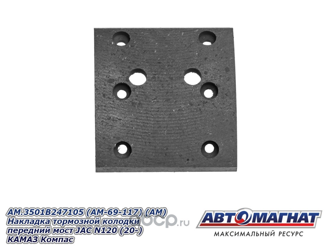 Накладка тормозной колодки передний мост JAC N120 (20-) КАМАЗ Компас-12 , сверленые комплект 8шт. с заклепками