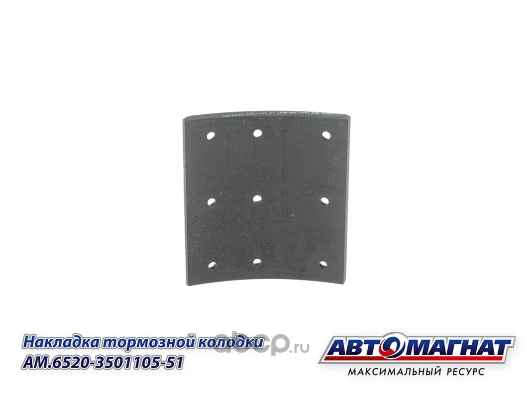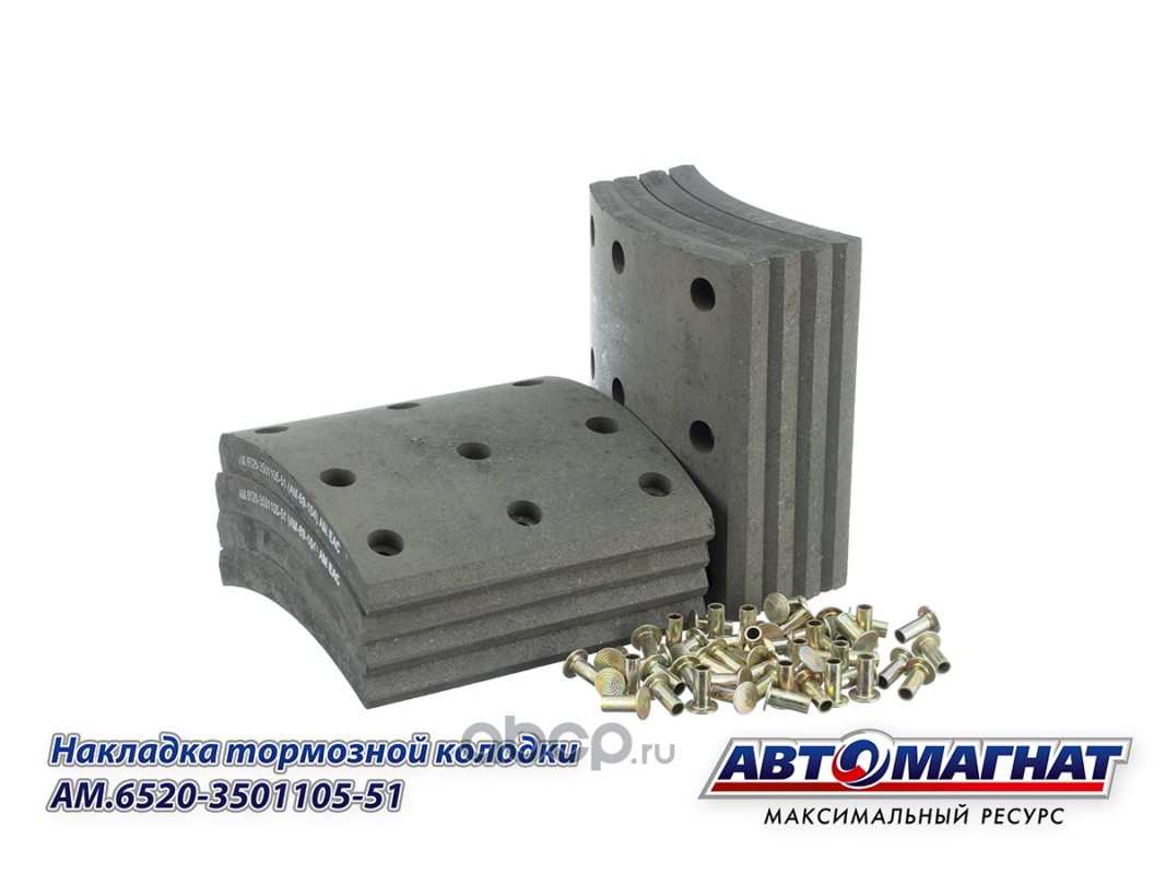 Накладка тормозной колодки КАМАЗ-6520, 6560 (13-) сверленая, расточенная, комплект 8шт. с заклепками
