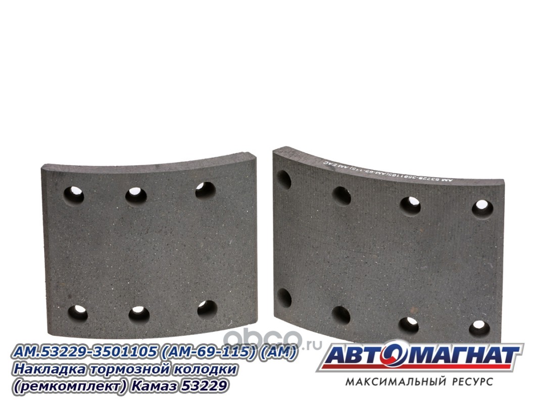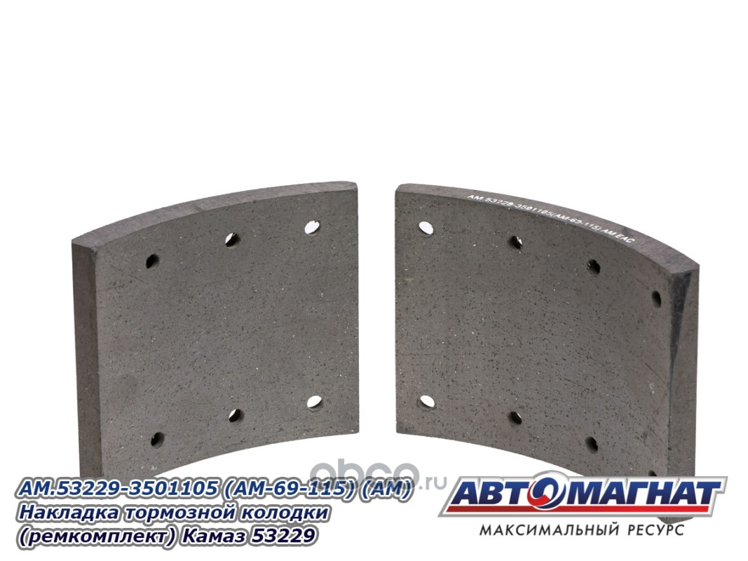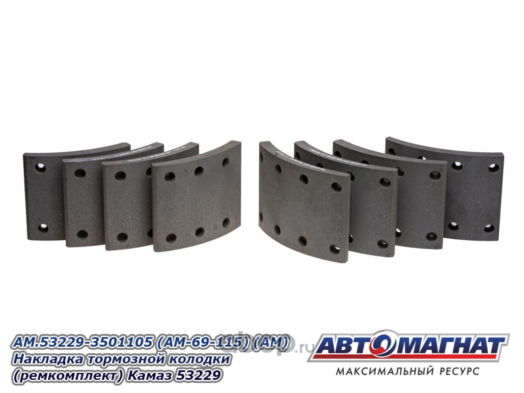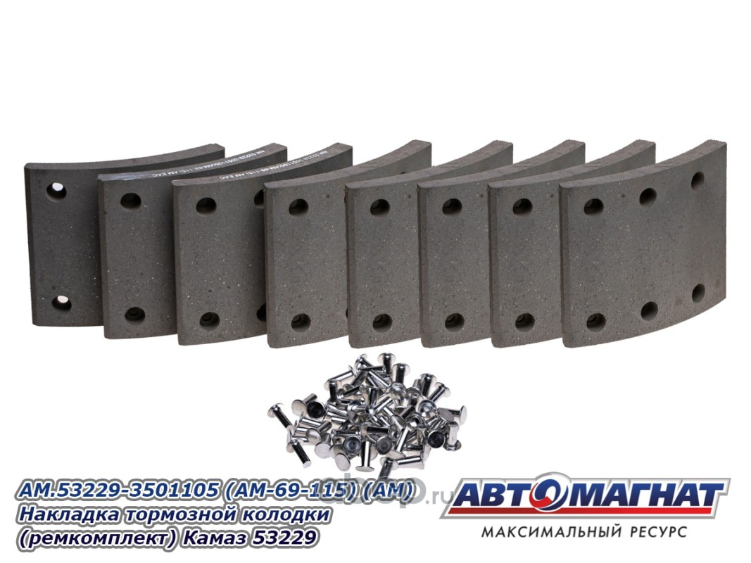 Накладка тормозной колодки (ремкомплект) Камаз 53229 (сверленая, расточенная, комплект 8 штук: 4 коротких + 4 длинных, алюминиевые заклепки,)