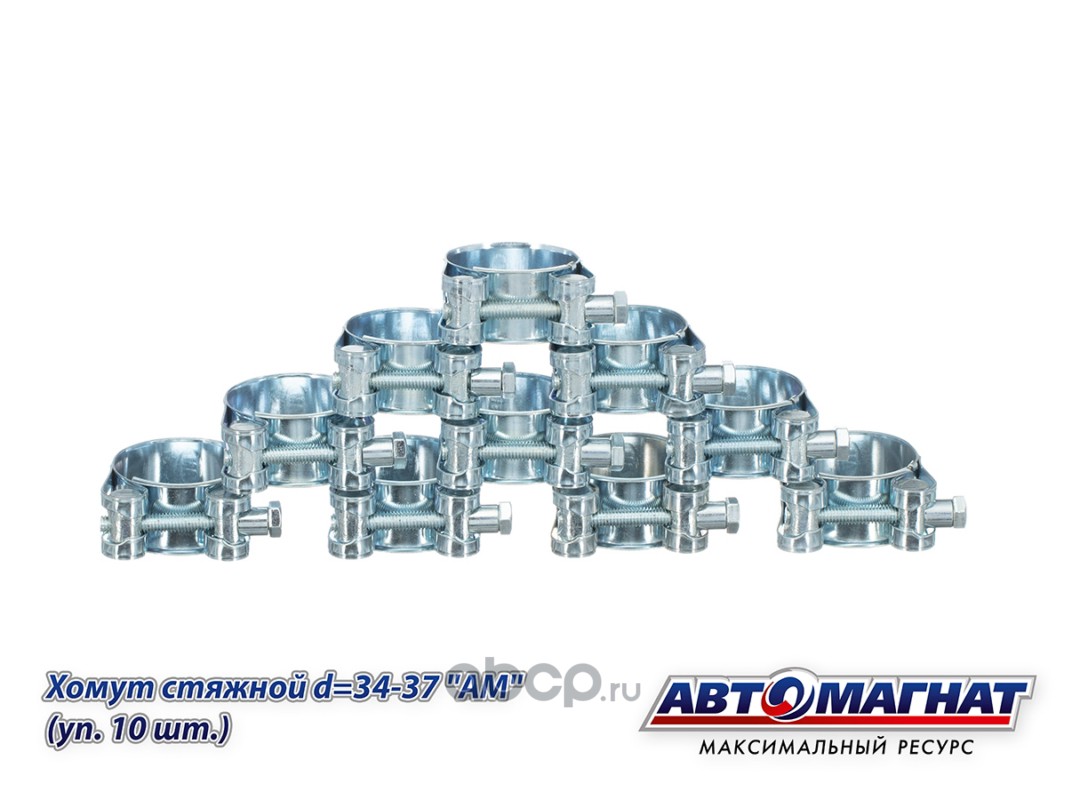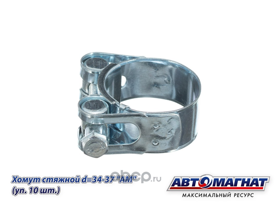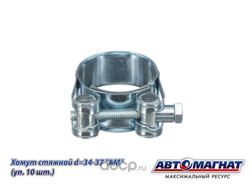 Хомут стяжной d=34-37 , ширина 20 мм., W1 -Оцинкованный металл "Автомагнат", (уп. 10 шт)
