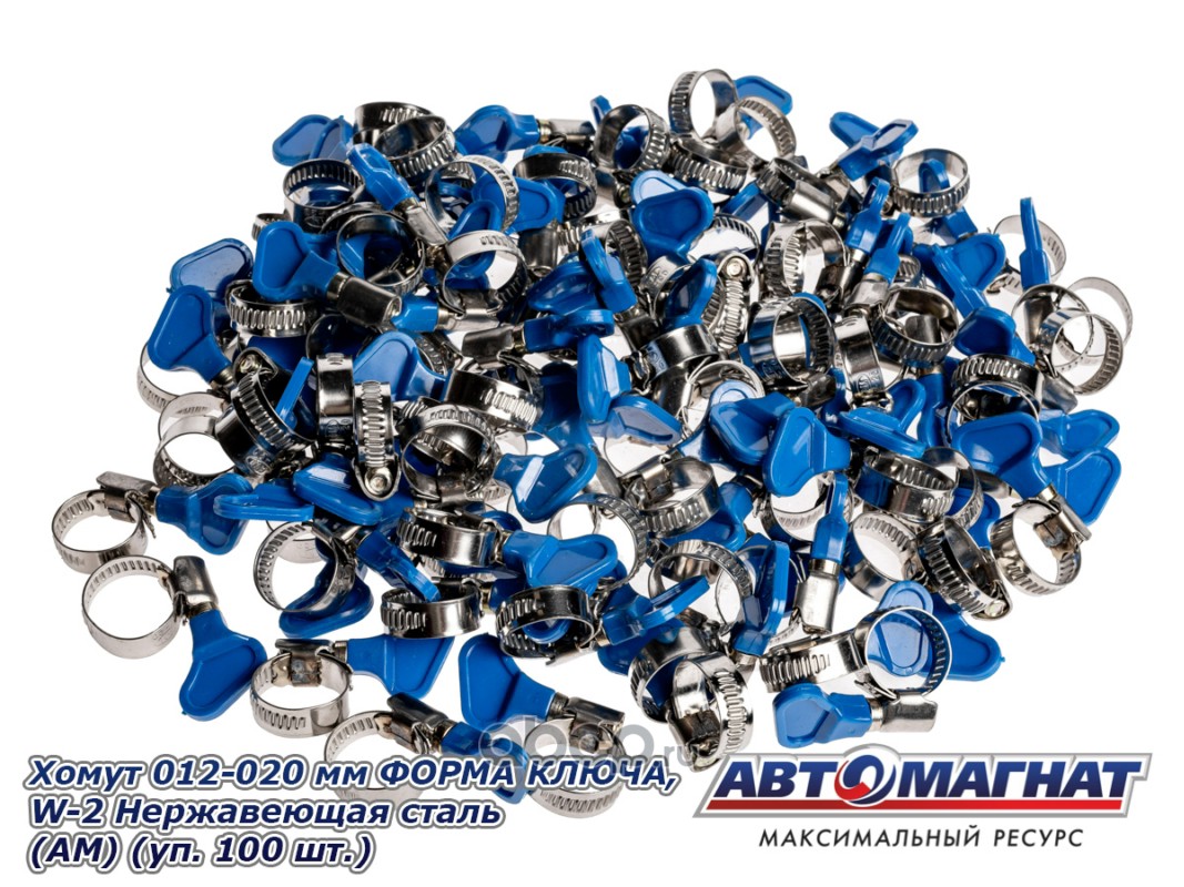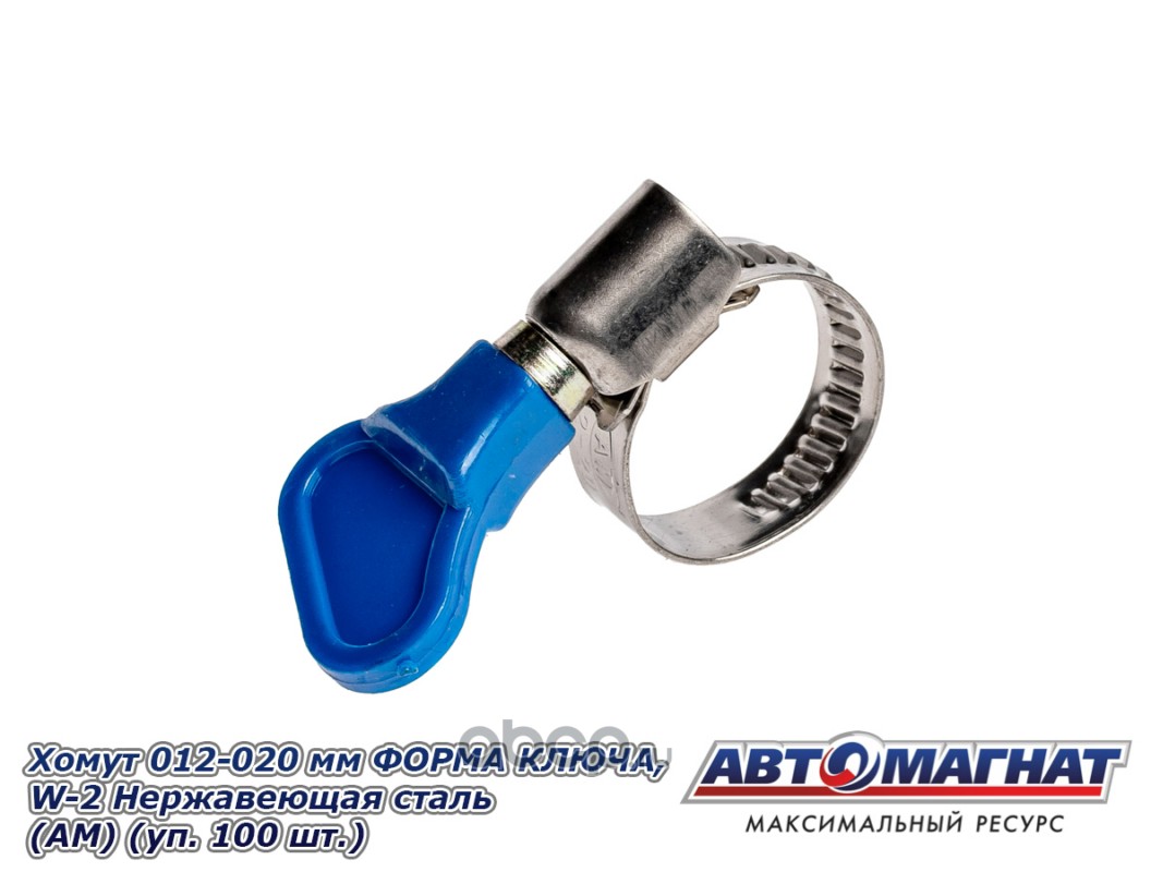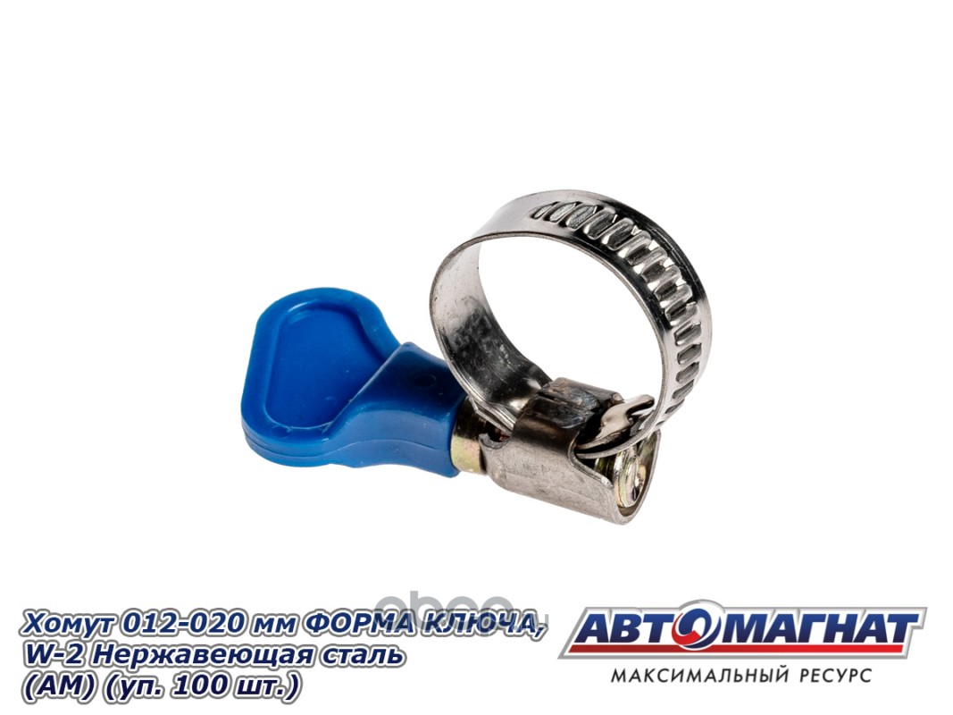 Хомут ленточный 012-020 мм, ширина 9 мм., W2-Нержавеющая сталь, ФОРМА КЛЮЧА, "Автомагнат", (уп.100 шт)