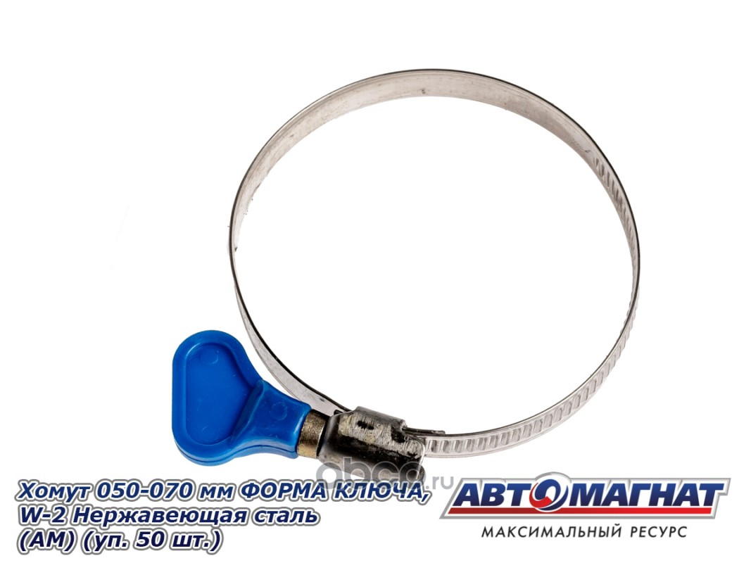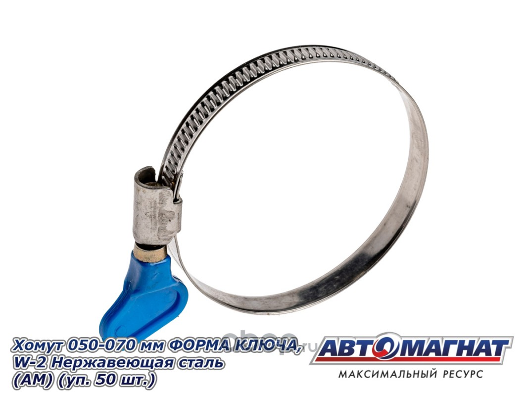 Хомут ленточный 050-070 мм, ширина 9 мм., W2-Нержавеющая стальл, ФОРМА КЛЮЧА, "Автомагнат", (уп.50 шт)