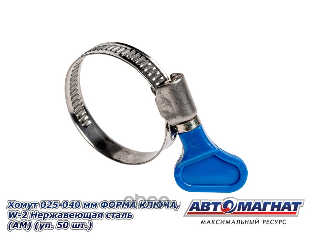 Хомут ленточный 032-050 мм, ширина 9 мм., W2-Нержавеющая сталь, ФОРМА КЛЮЧА, "Автомагнат", (уп.50 шт)