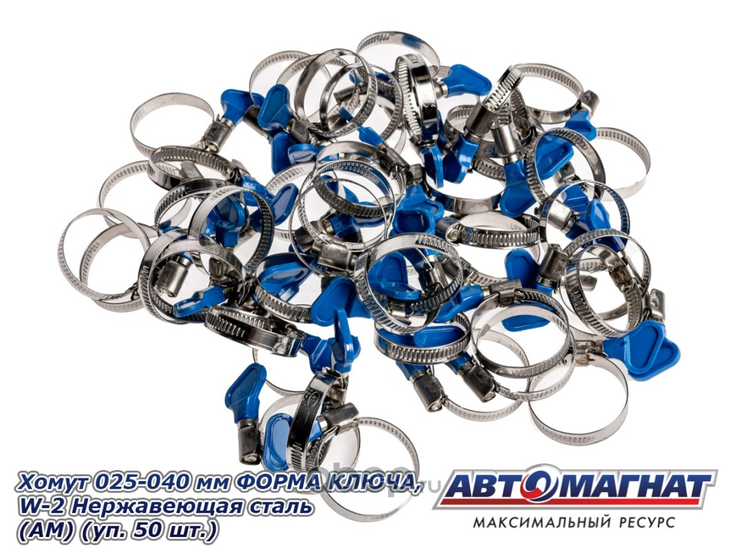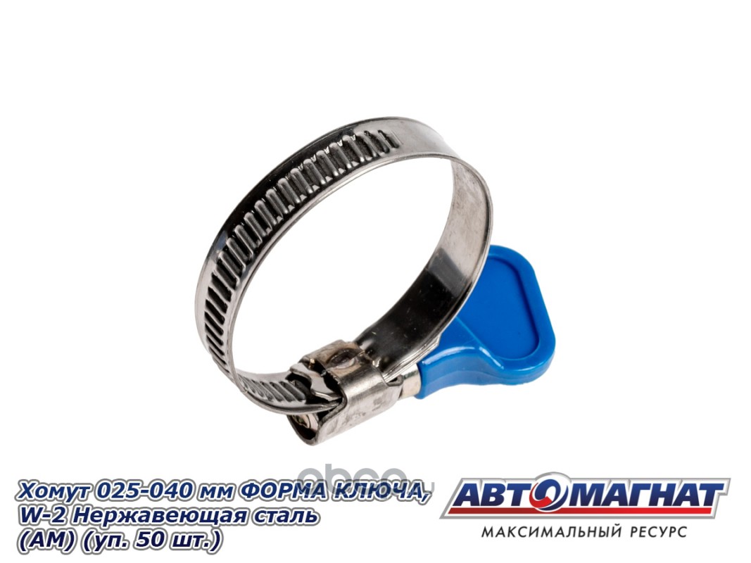 Хомут ленточный 025-040 мм, ширина 9 мм., W2-Нержавеющая сталь, ФОРМА КЛЮЧА , "Автомагнат", (уп.50 шт)