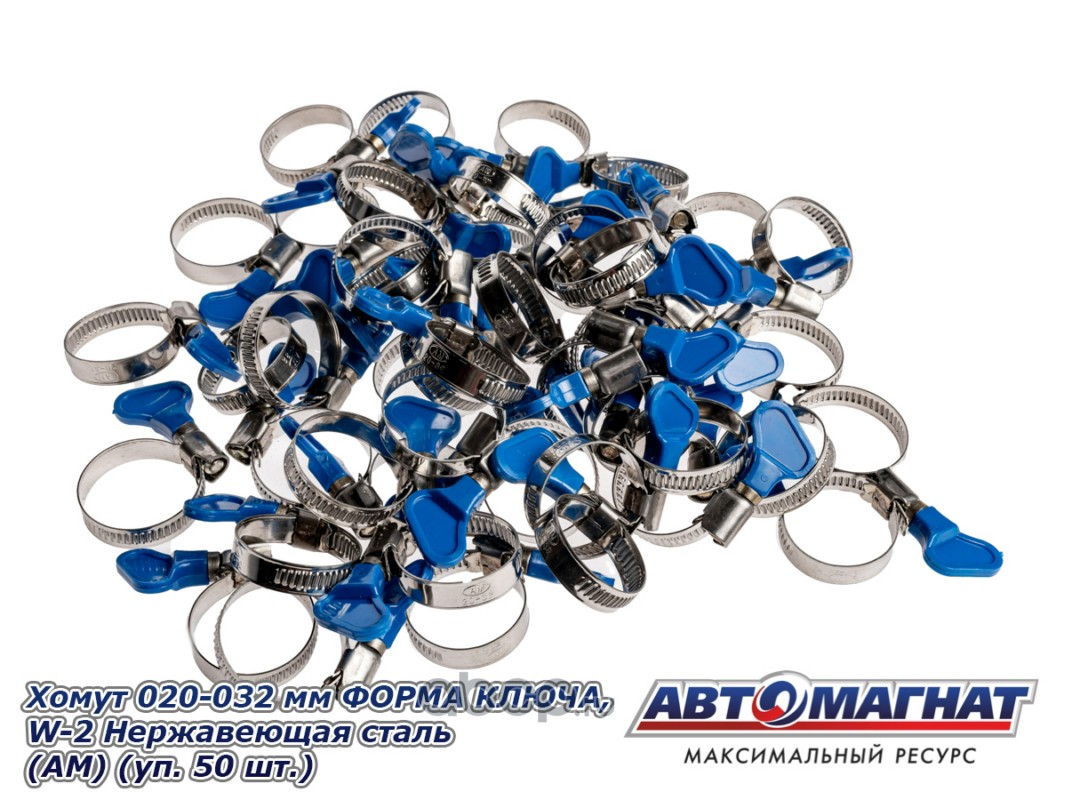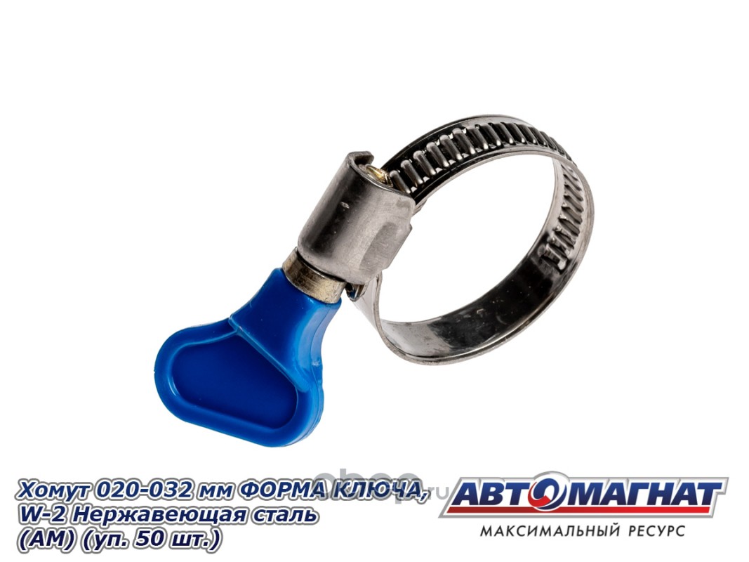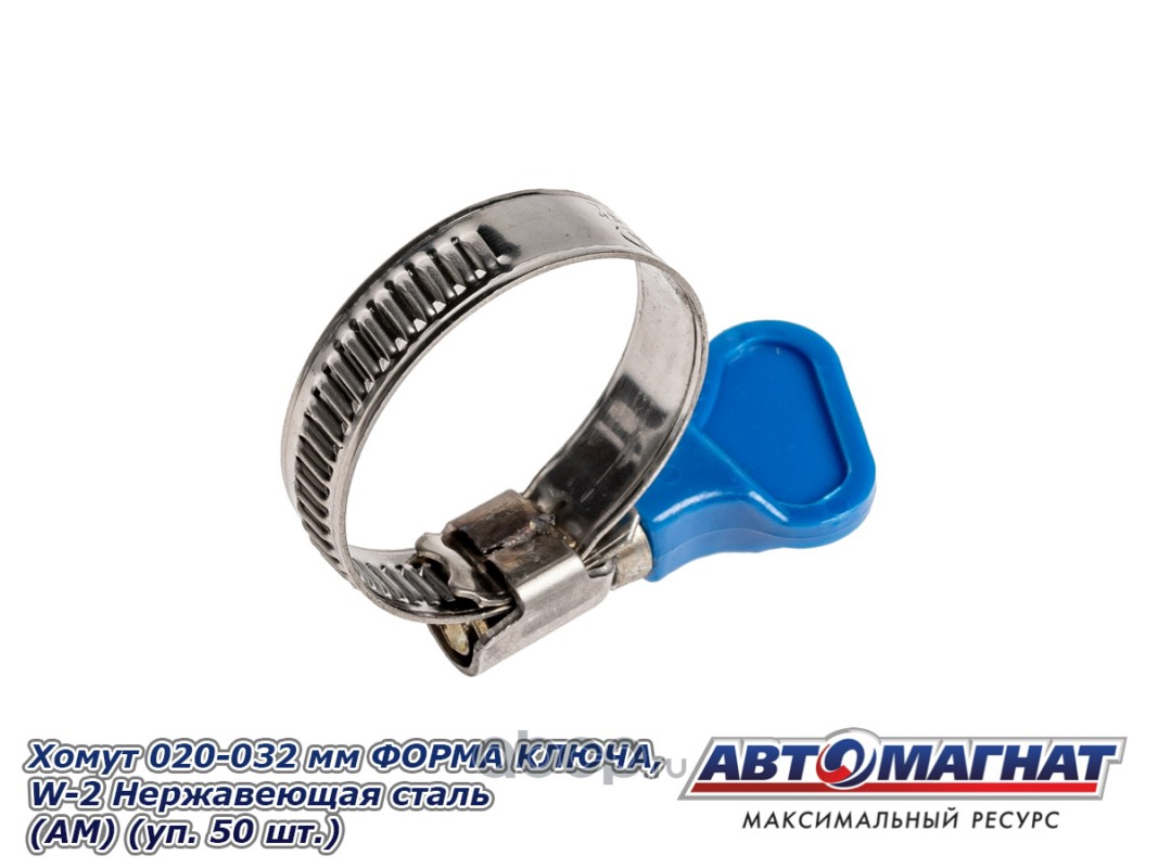 Хомут ленточный 020-032 мм, ширина 9 мм., W2-Нержавеющая сталь, ФОРМА КЛЮЧА, "Автомагнат", (уп.50 шт)