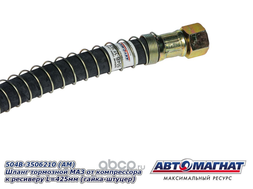 Шланг тормозной МАЗ-5440B9, 6430B9 от компрессора к ресиверу L=425мм (гайка-штуцер)