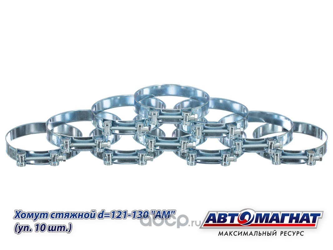 Хомут стяжной d=121-130 , ширина 24 мм., W1 -Оцинкованный металл "Автомагнат", (уп. 10 шт)