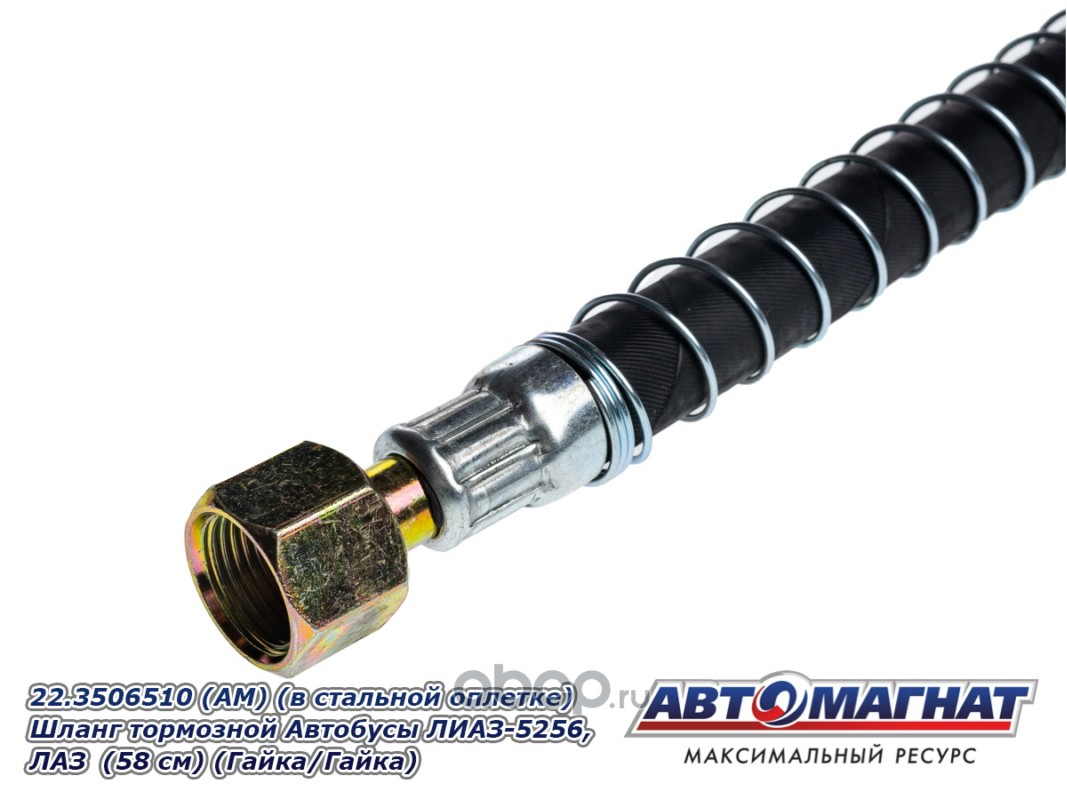 Шланг тормозной Автобусы ЛИАЗ-5256, ЛАЗ (58 см) (в стальной оплетке) (Гайка/Гайка)