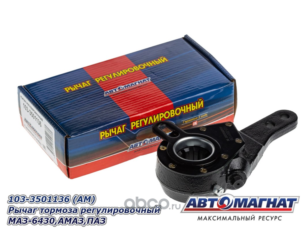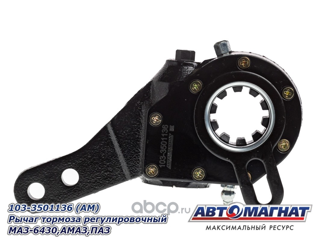АВТОМАГНАТ AM27035 Рычаг тормоза регулировочный МАЗ-543403, 641705, 641708 задний правый (средний левый) узкий шлиц 10 зубов