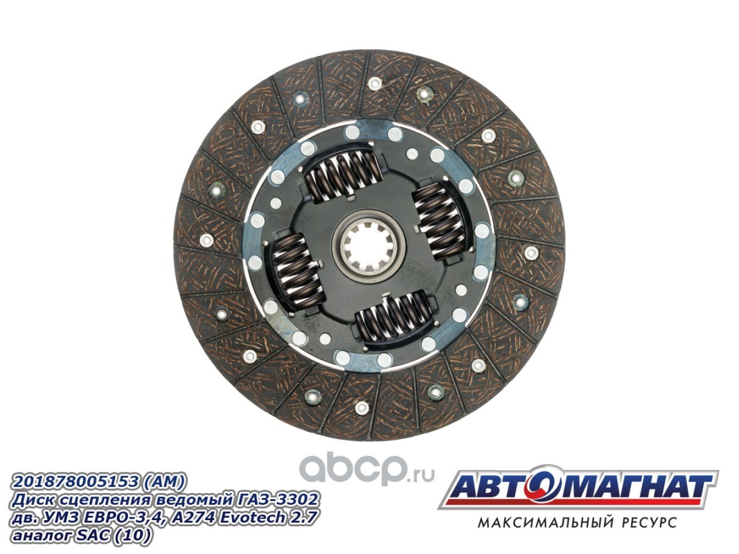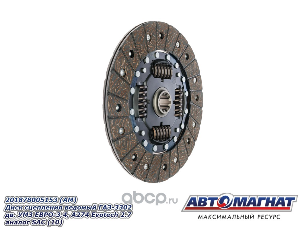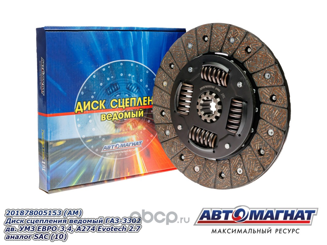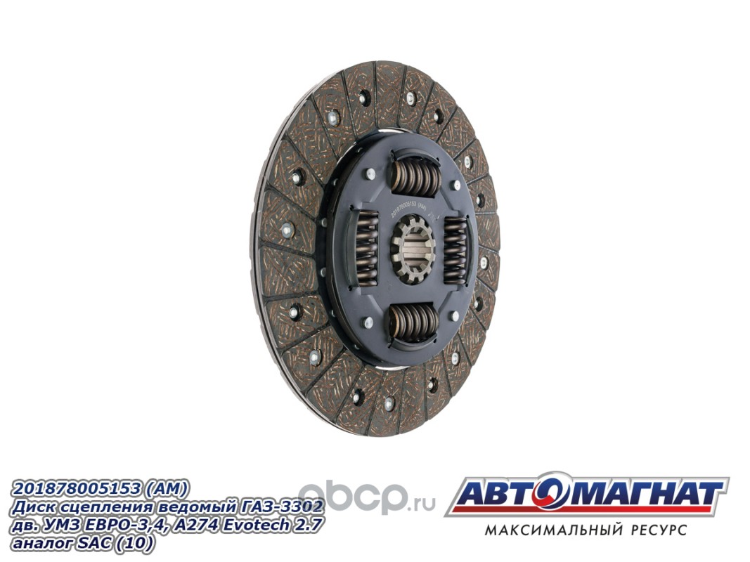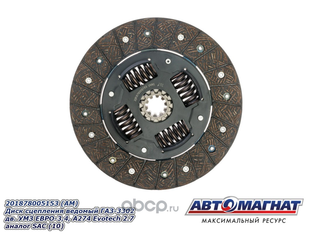 АВТОМАГНАТ AM28010 Диск сцепления ведомый ГАЗ-3302 дв.УМЗ ЕВРО-3,4, А274 Evotech 2.7