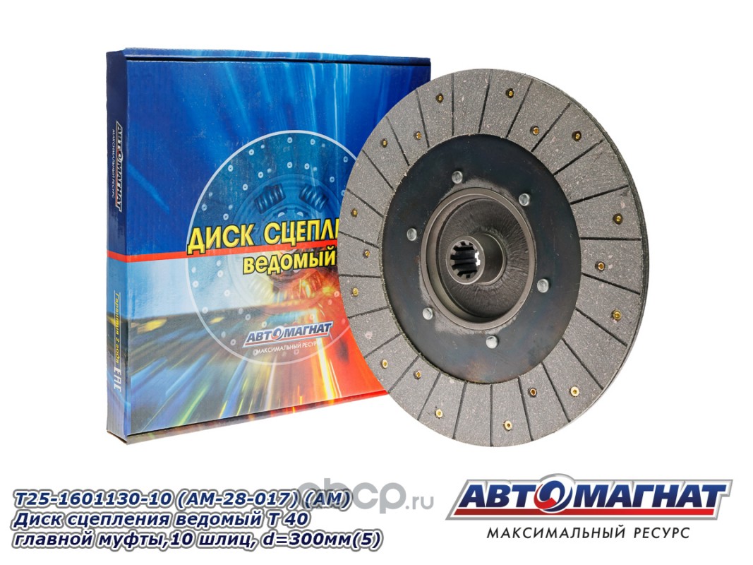 АВТОМАГНАТ AM28017 Диск сцепления Т-40 главной муфты ведомый (10 шлиц) (300мм)