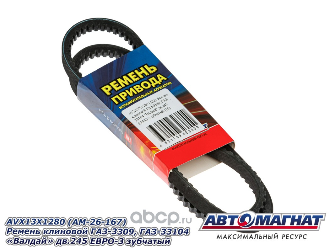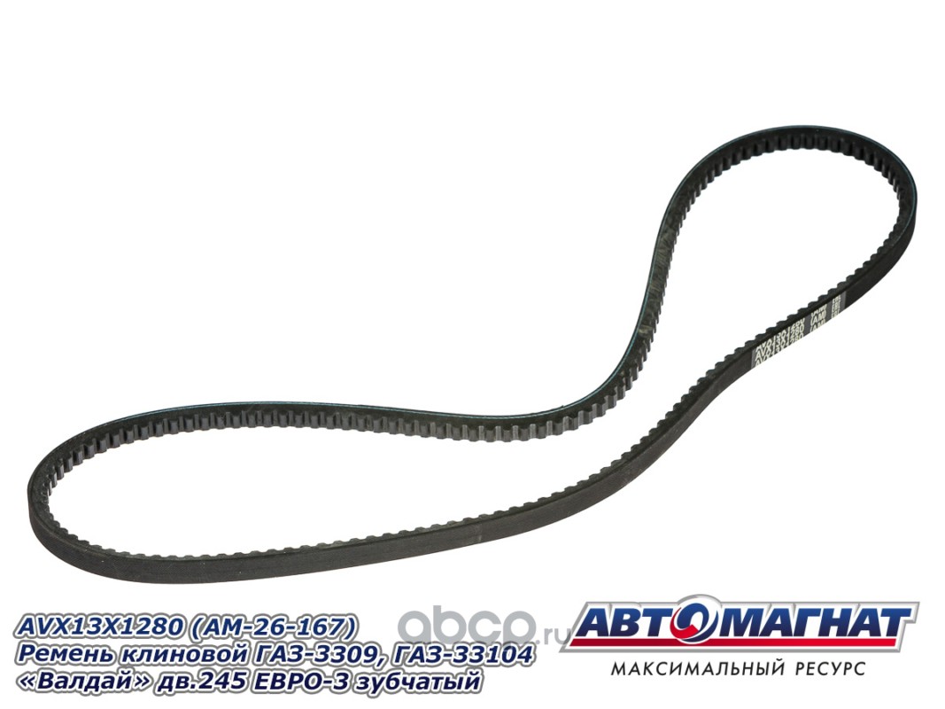 АВТОМАГНАТ AM26167 Ремень клиновой ГАЗ-3309, ГАЗ-33104 "Валдай" дв.245 ЕВРО-3 зубчатый