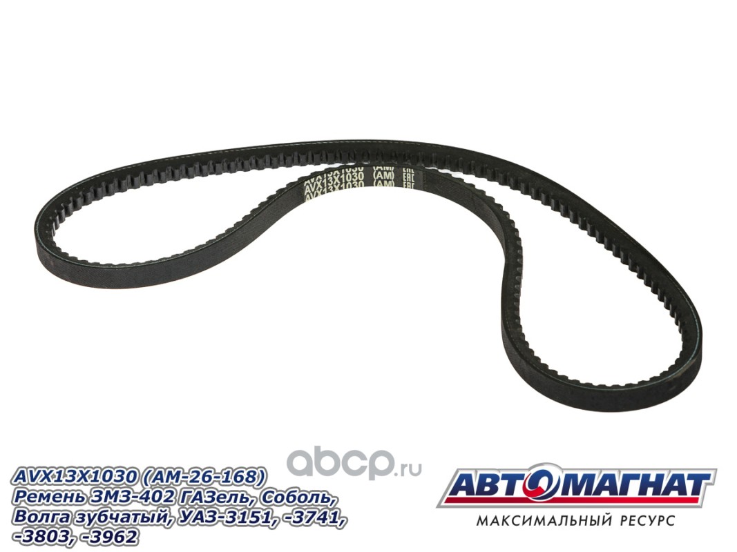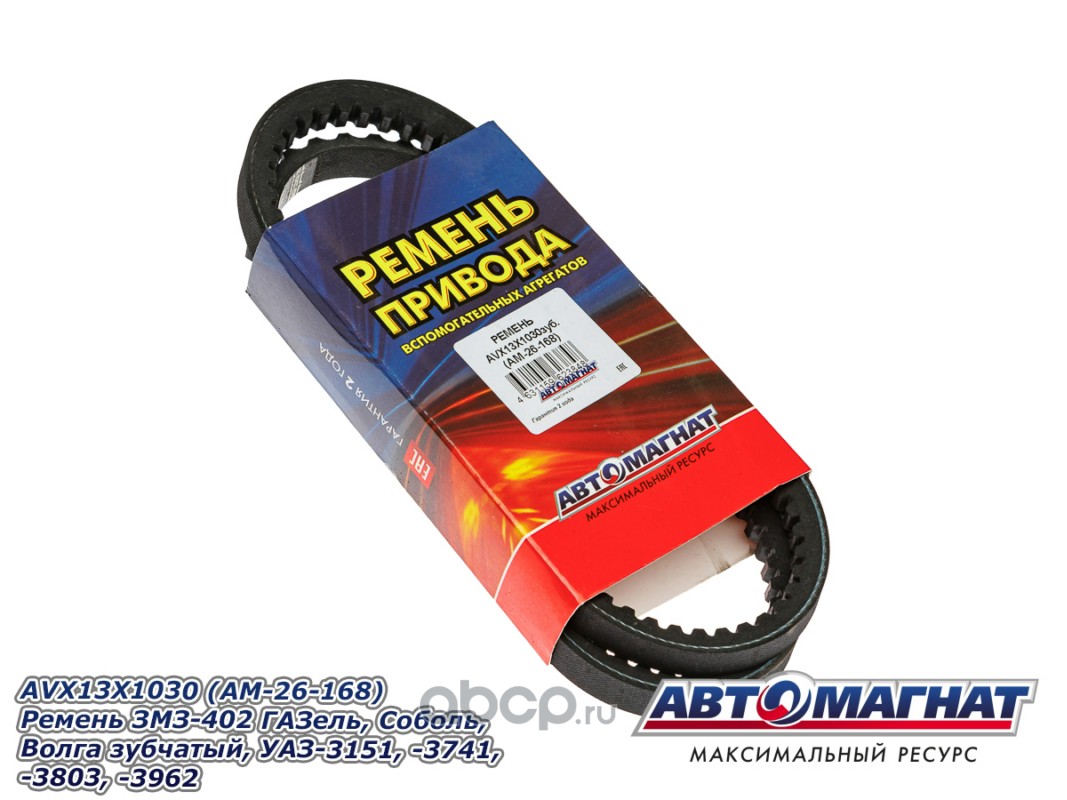 АВТОМАГНАТ AM26168 Ремень ЗМЗ-402 ГАЗель, Соболь, Волга зубчатый, УАЗ-3151, -3741, -3803, -3962