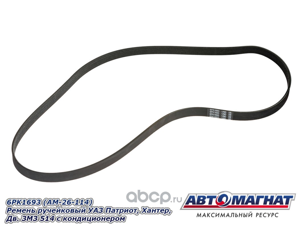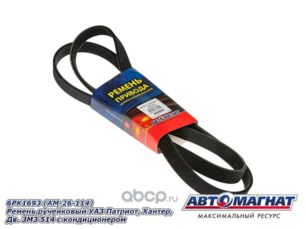 АВТОМАГНАТ AM26114 Ремень ручейковый УАЗ Патриот, Хантер, Дв. ЗМЗ 514 с кондиционером