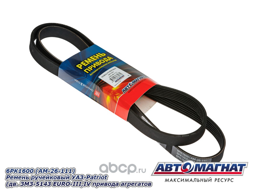 АВТОМАГНАТ AM26111 Ремень ручейковый УАЗ-Patriot (дв. ЗМЗ-5143 EURO-III,IV привода агрегатов