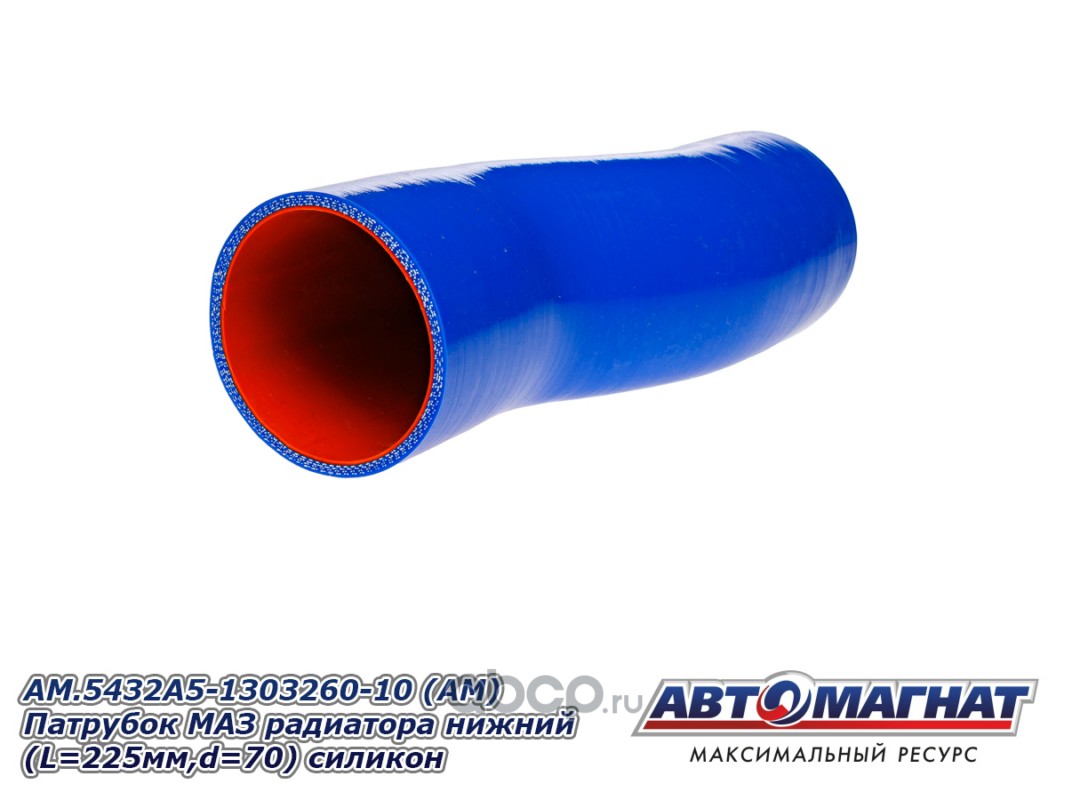 Патрубок МАЗ-555102, 5551А2 радиатора нижний (L=225мм,d=70) силикон.