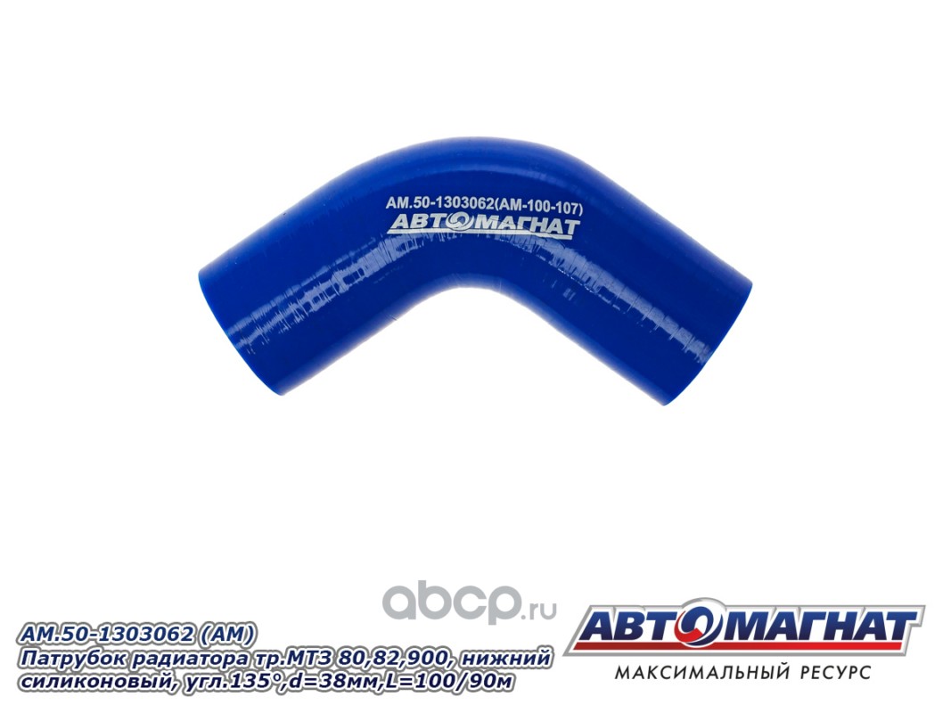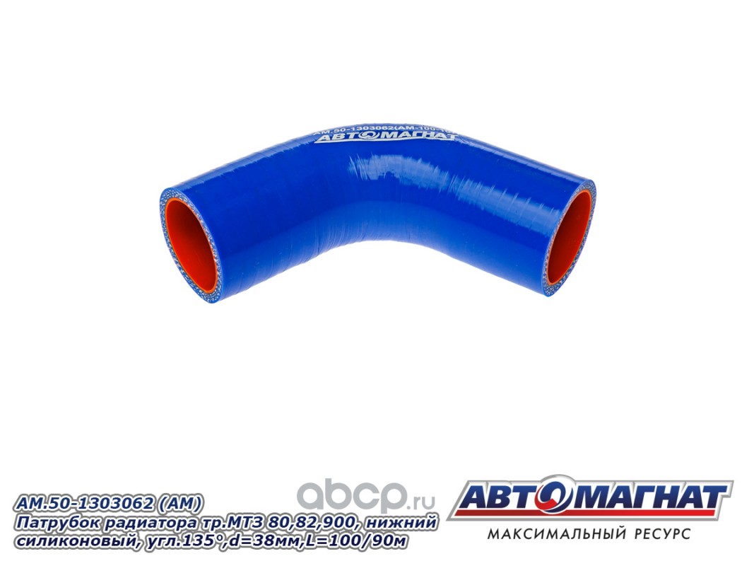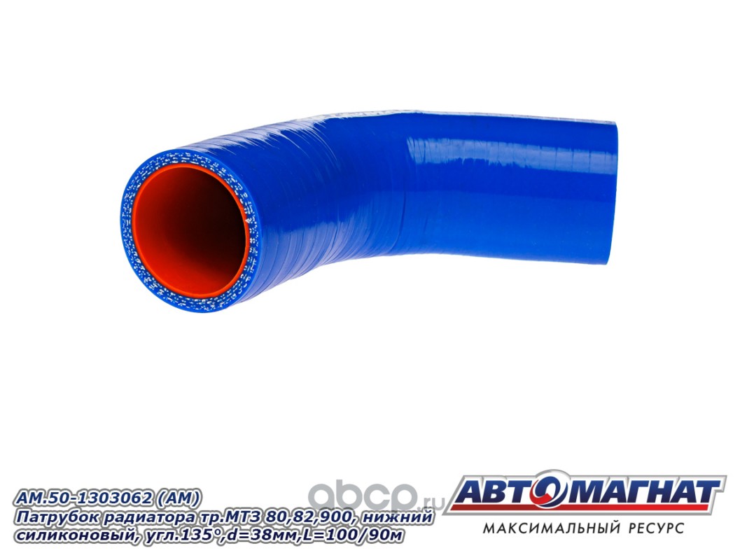 Патрубок радиатора тр. МТЗ 80, 82, 900, нижний силиконовый, угловой 135°, d=38мм., L=100/90м