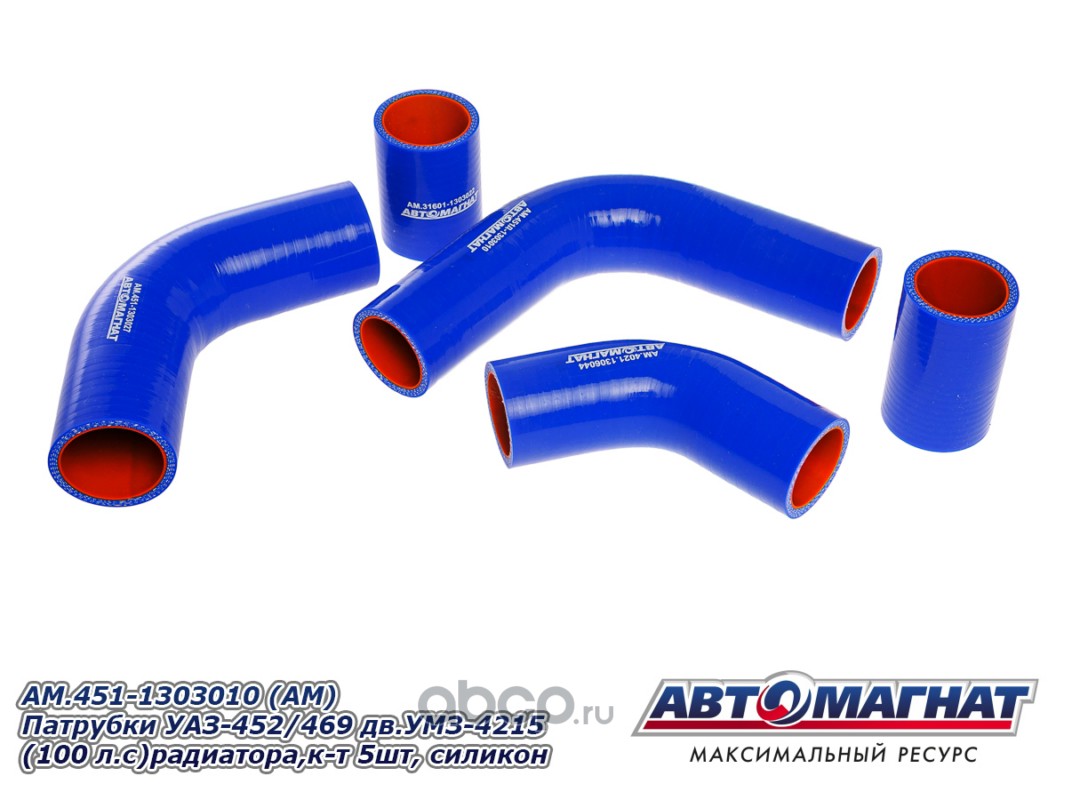 Патрубки УАЗ-452/469 дв.УМЗ-4215 (100 л.с)радиатора комплект 5шт. силикон.