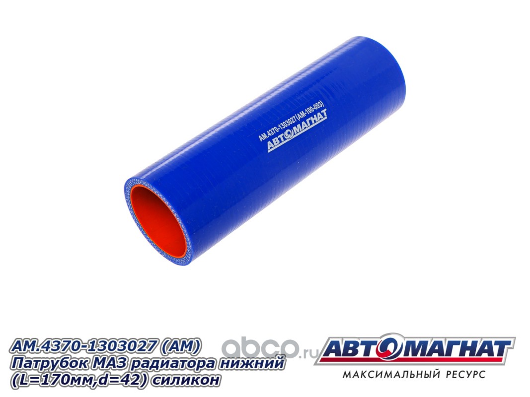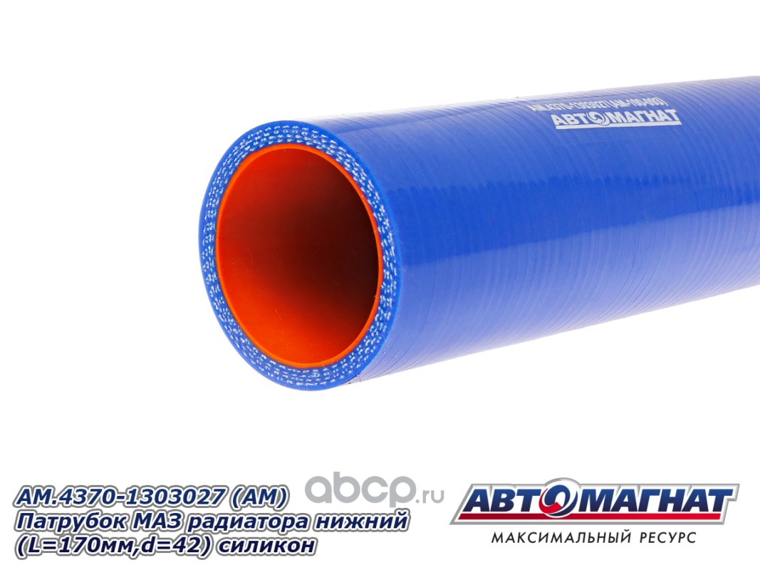 Патрубок МАЗ 4370, 256 радиатора нижний (L=170мм,d=42) силикон.