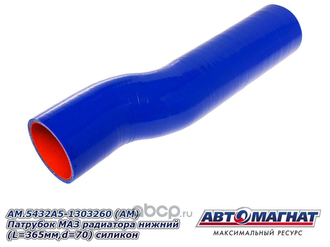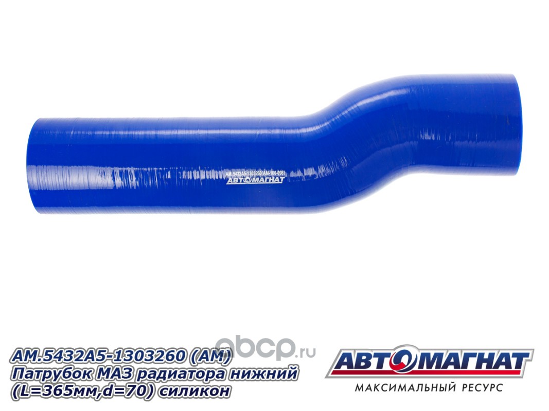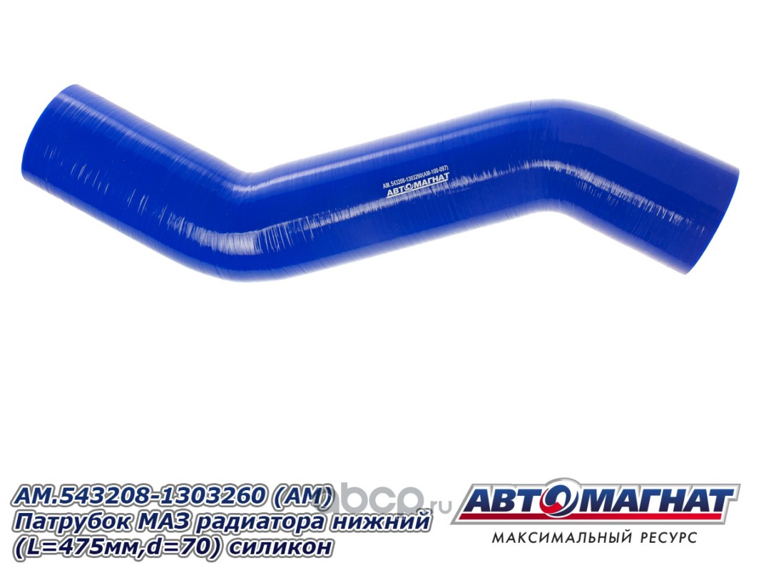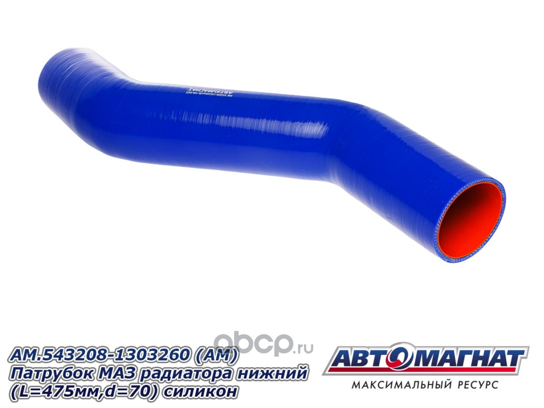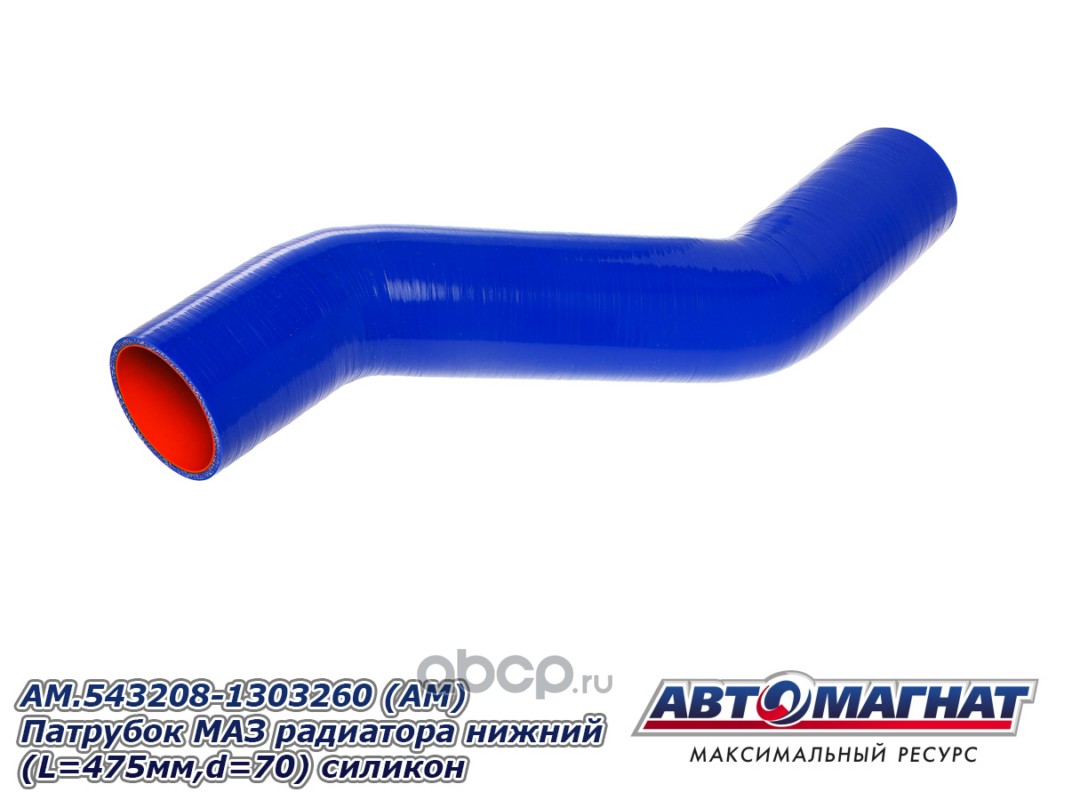 Патрубок МАЗ-543403, 641705, 641708 радиатора нижний (L=475мм,d=70) силикон.