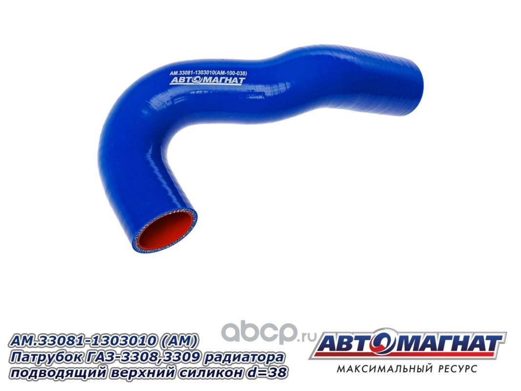 АВТОМАГНАТ AM100038 Патрубок ГАЗ-3308,3309 радиатора подводящий верхний силикон (d=38).