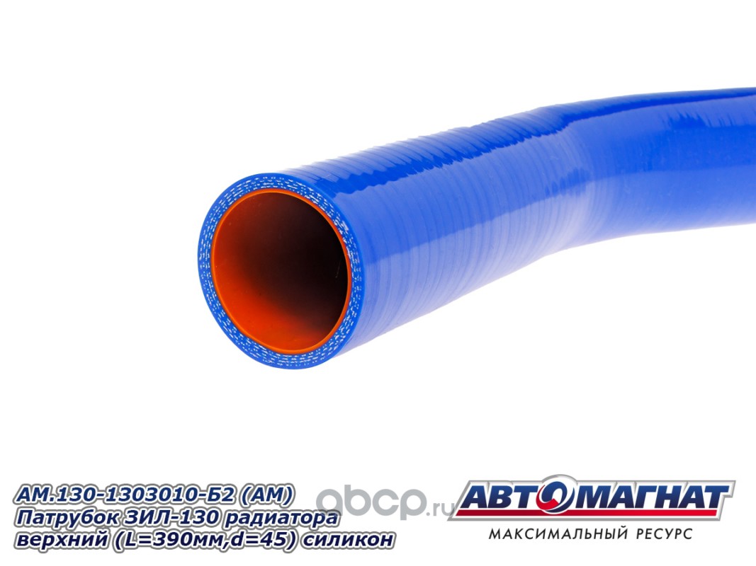 АВТОМАГНАТ AM100052 Патрубок ЗИЛ-130 радиатора верхний (L=390мм, d=45) силикон.
