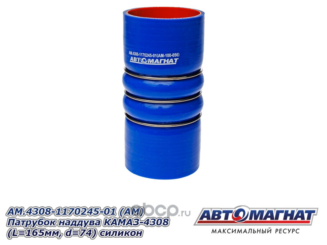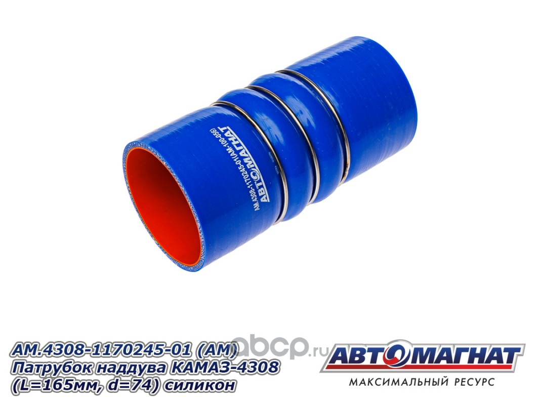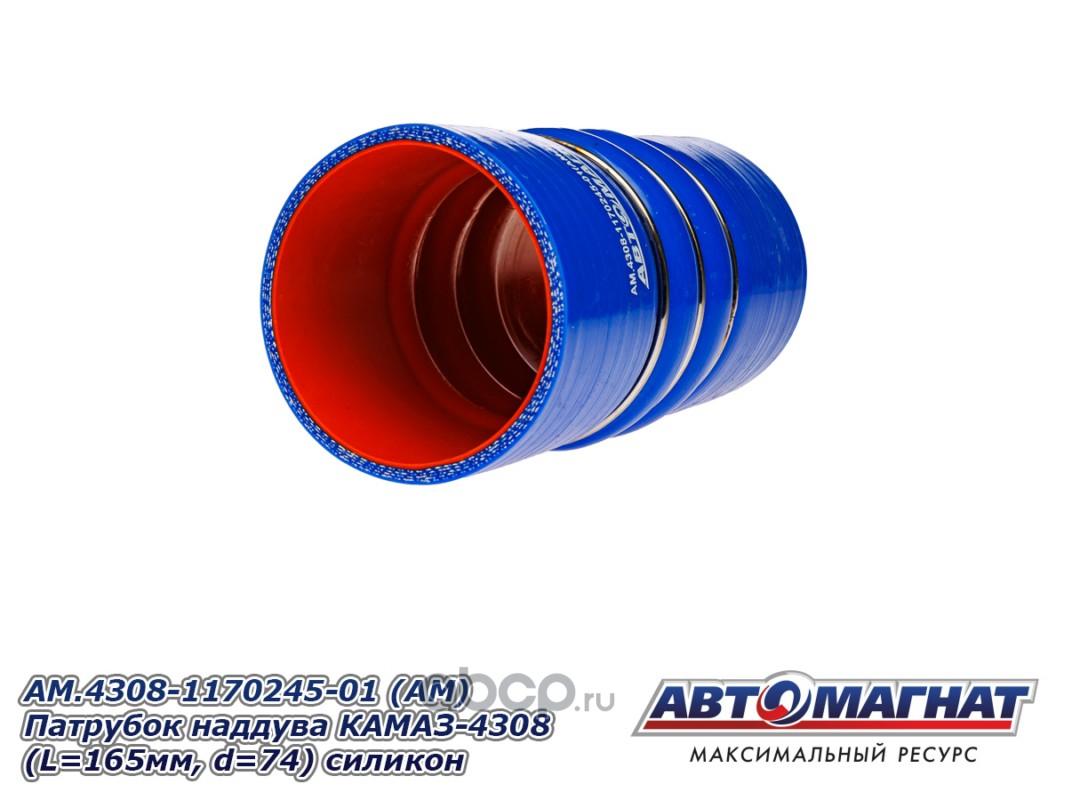 АВТОМАГНАТ AM100056 Патрубок наддува КАМАЗ-4308 силикон (L=165мм, d=74) силикон.