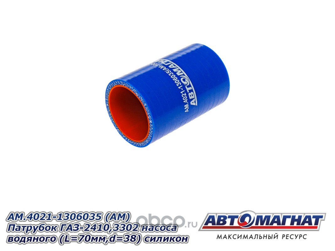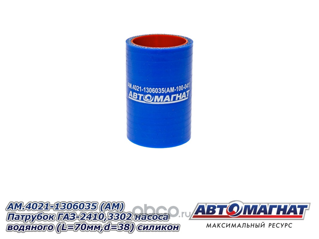 АВТОМАГНАТ AM100041 Патрубок ГАЗ-2410,3302 насоса водяного (L=70мм,d=38) силикон.