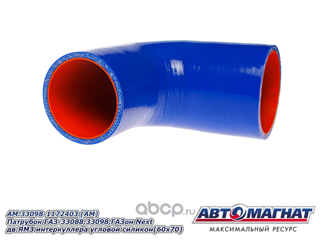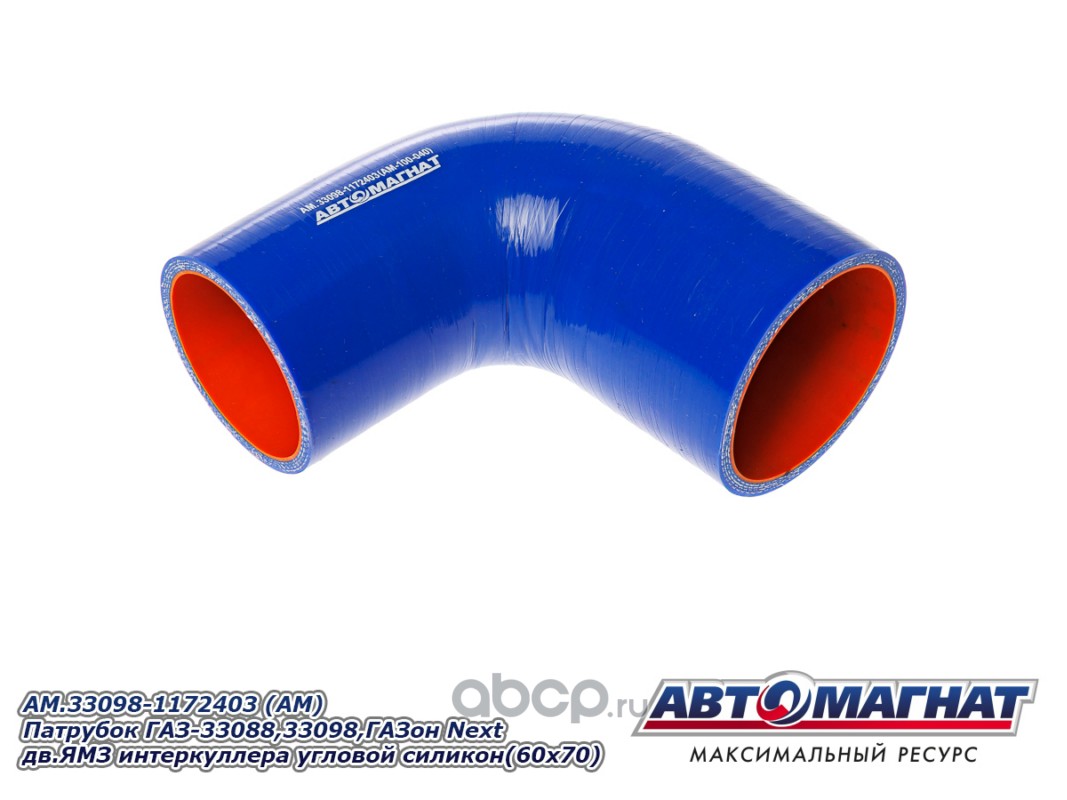АВТОМАГНАТ AM100040 Патрубок ГАЗ-33088,33098,ГАЗон Next дв.ЯМЗ интеркуллера угловой силикон (60x70).