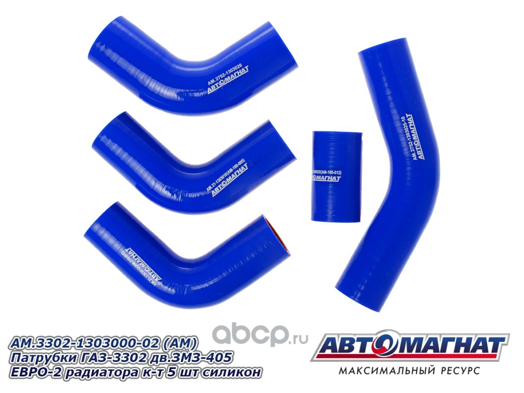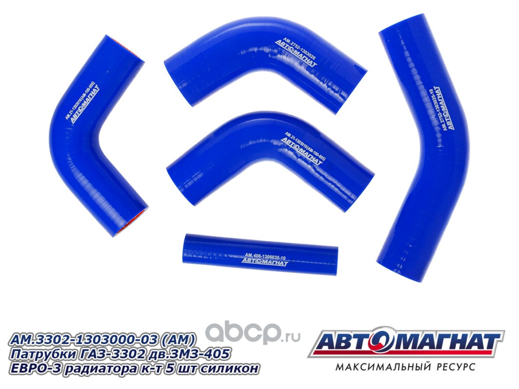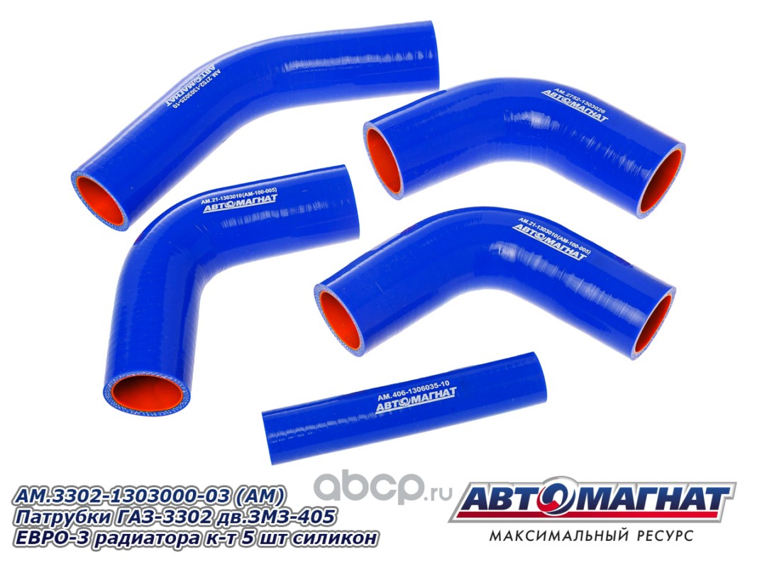 АВТОМАГНАТ AM100023 Патрубки ГАЗ-3302 дв.ЗМЗ-405 ЕВРО-3 радиатора комплект 5шт. силикон.
