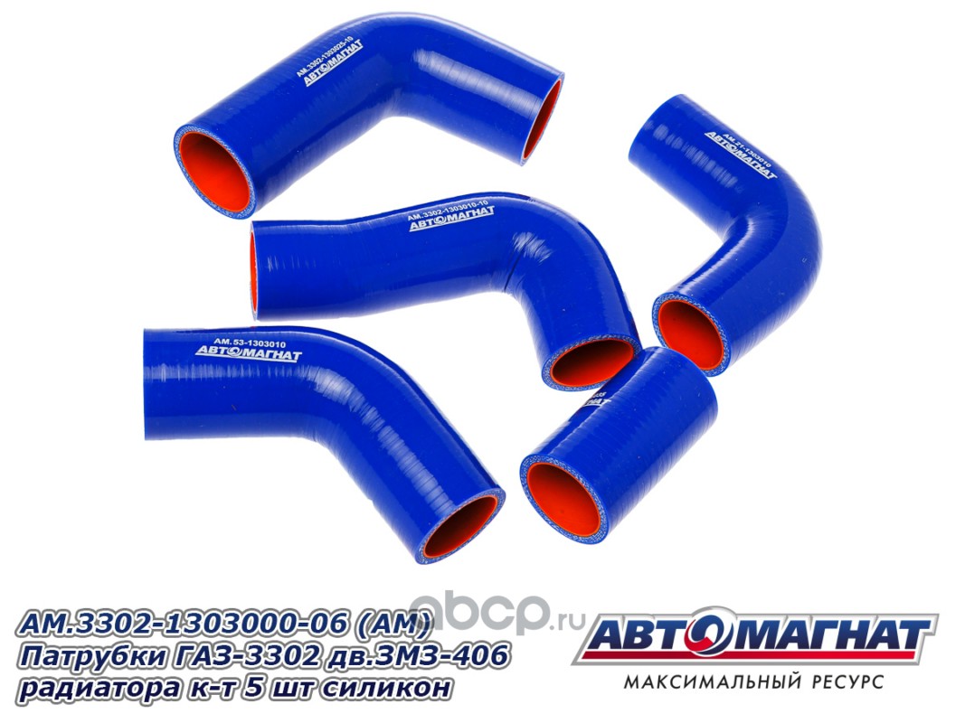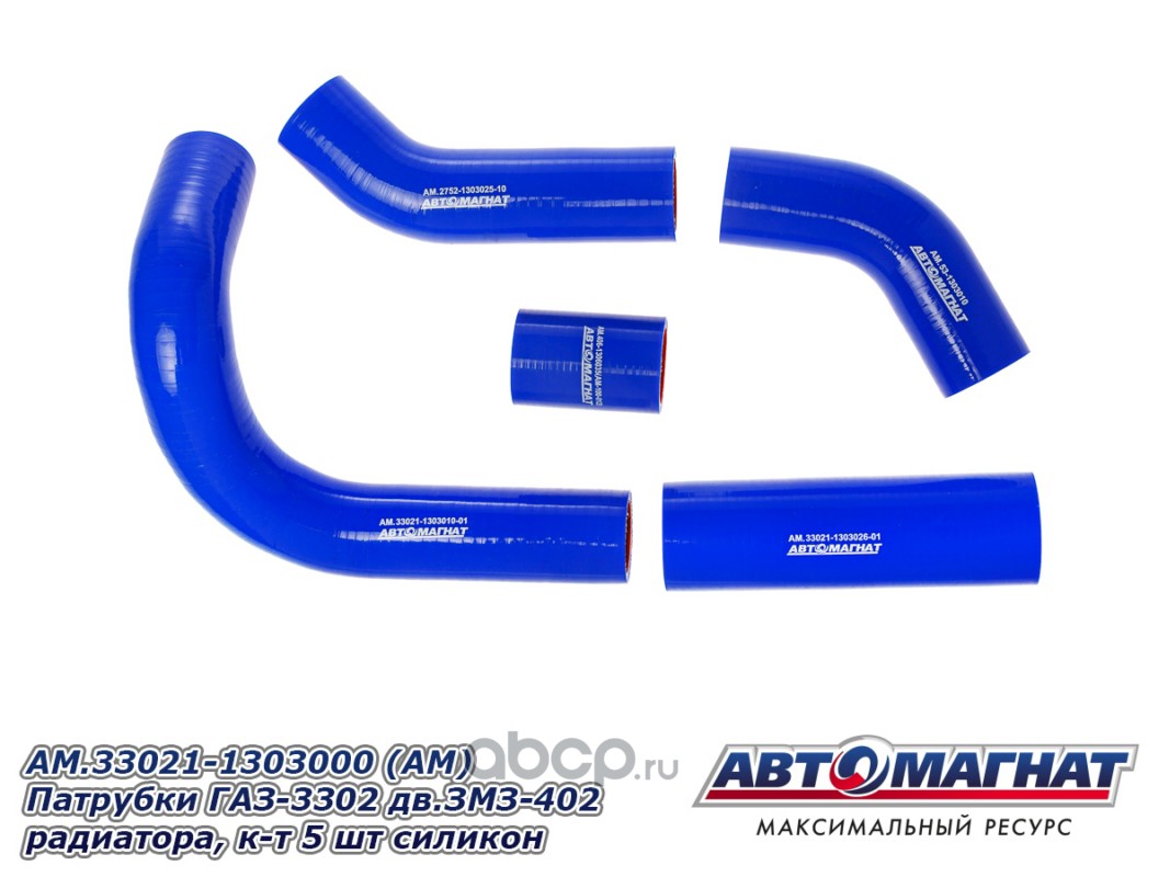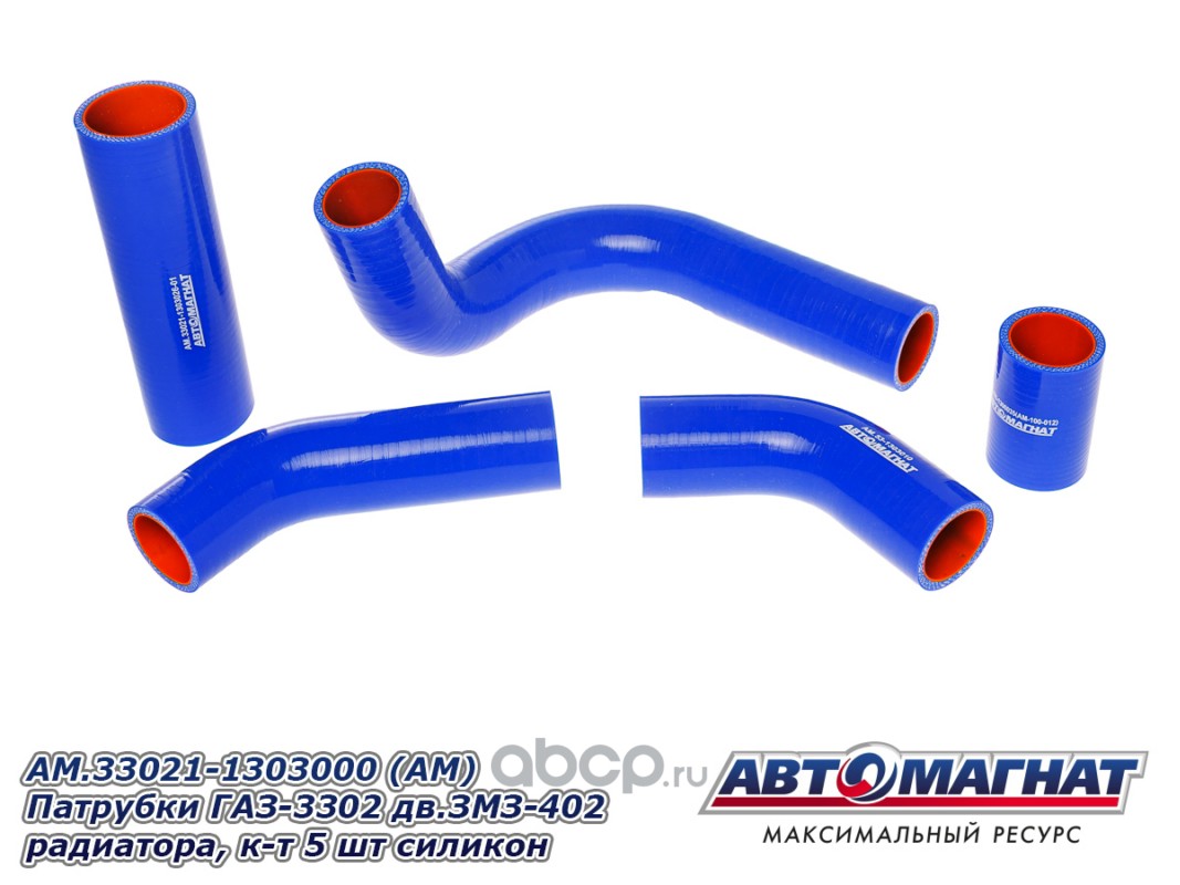 АВТОМАГНАТ AM100033 Патрубки ГАЗ-3302 дв.ЗМЗ-402 радиатора комплект 5шт. силикон.