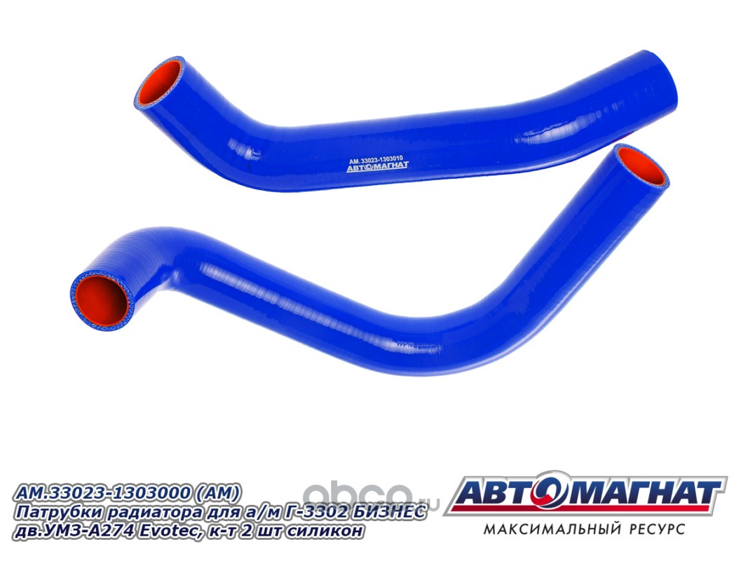 АВТОМАГНАТ AM100034 Патрубки радиатора для а/м Г-3302 БИЗНЕ С дв.УМЗ-A274 Evotech комплект 2шт. силикон.