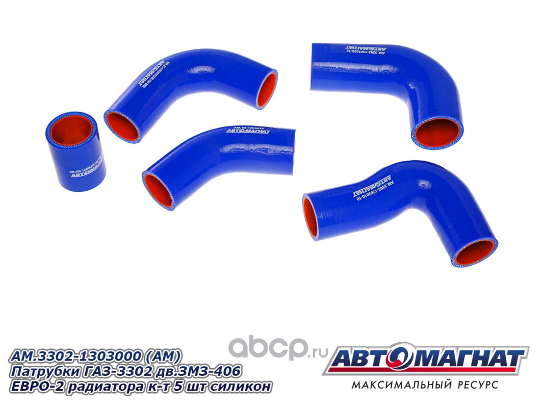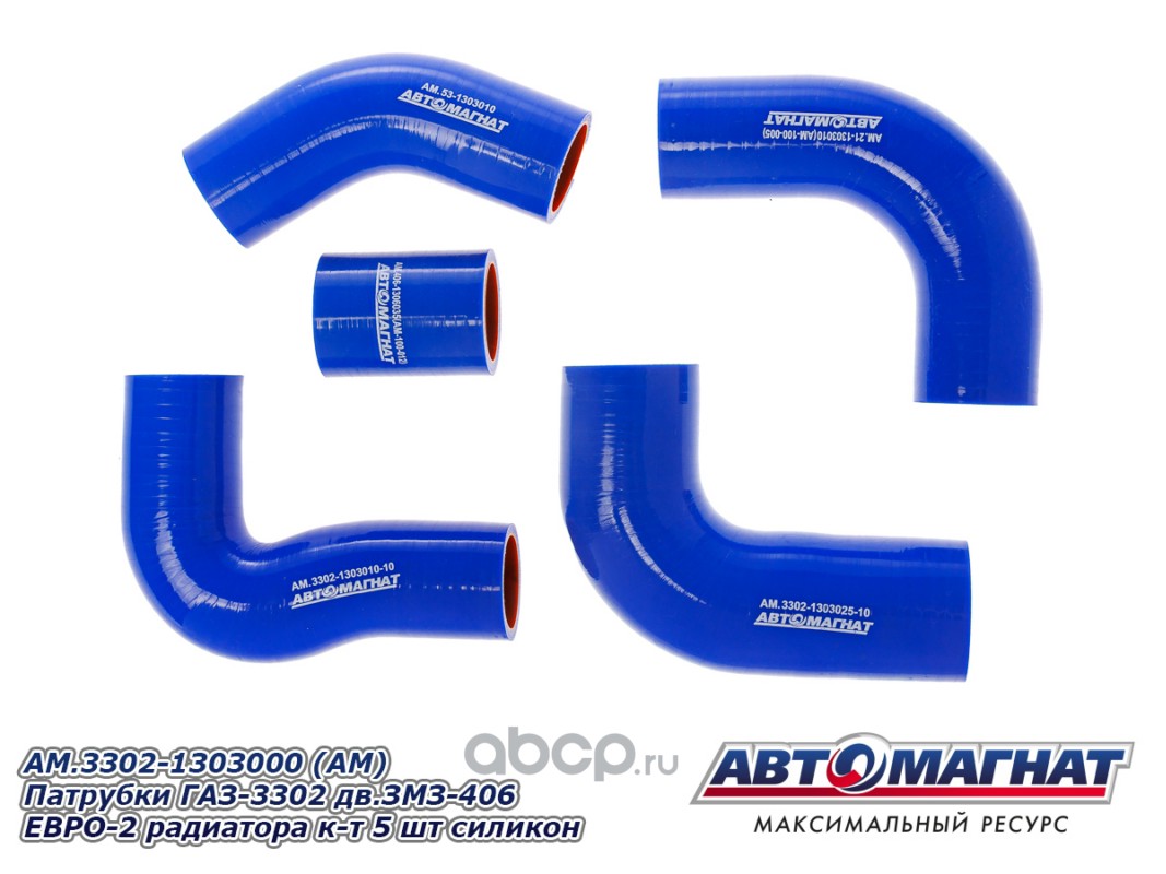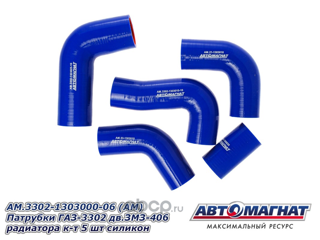 АВТОМАГНАТ AM100021 Патрубки ГАЗ-3302 дв.ЗМЗ-406 ЕВРО-2 радиатора комплект 5шт. силикон.