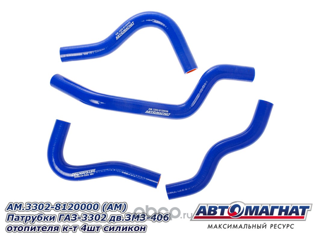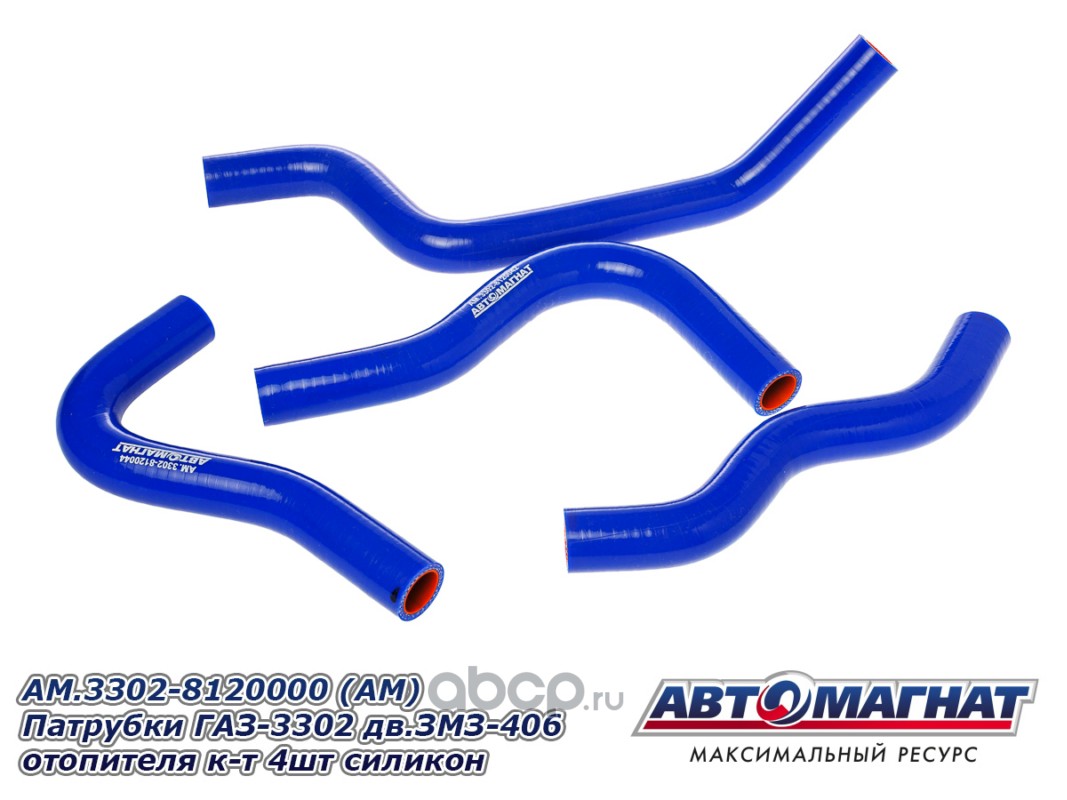 АВТОМАГНАТ AM100028 Патрубки ГАЗ-3302 дв.ЗМЗ-406 отопителя комплект 4шт. силикон.
