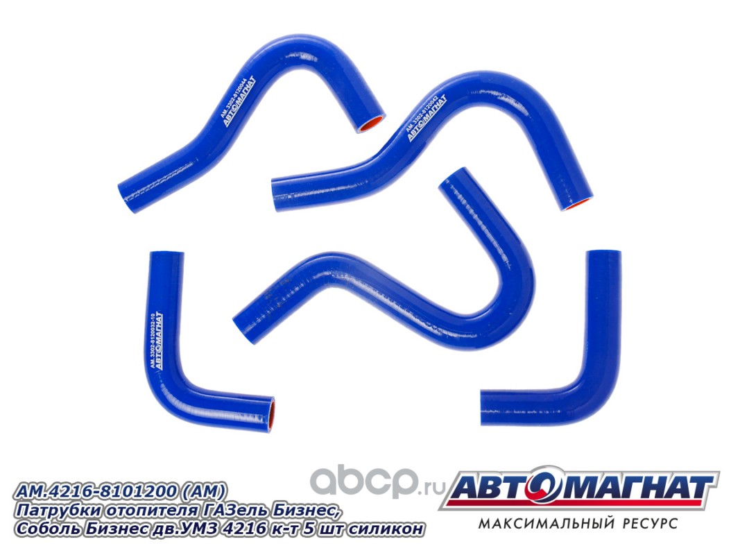АВТОМАГНАТ AM100019 Патрубки отопителя дв.УМЗ 42164, Евро 4, к-т 5шт силикон.
